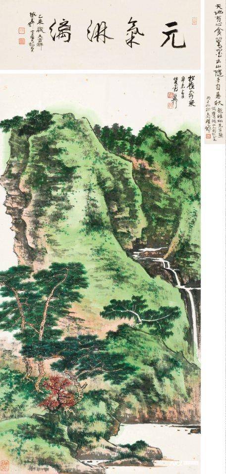 其中,1982年香港苏富比释出的吴昌硕《红梅寿石图》尺幅逾八尺,气势恢宏;谢稚柳《松岭奔泉图》融宋人院体之工谨与元人笔墨之清润,松针劲挺、流泉如练,尽显其“骨法用笔”与“墨分五色”的高超驾驭,堪称海派山水典范,更有程十发题跋“天地有心贪笔墨,云山随手自春秋”为之增色。黄宾虹《晴峦暖翠》为其中年佳构,墨色交融、层峦隐现,传递其“内美静中参”的美学追求。此外,“梅景书屋”旧藏吴湖帆、潘静淑合作《付桐甥草虫卷》原装旧裱,保存精良,尤为难得,其余海派佳作不胜枚举。
