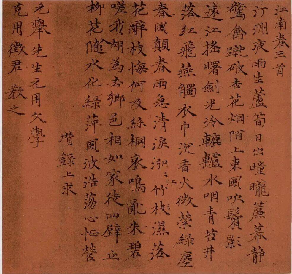囊括几十位吴中文人的《江南春词》唱和、《落花诗》唱和,是江南文学史上最富盛名的诗文唱和集会。参与、倡导『江南春』唱和集会的有沈周、文徵明、唐寅、祝允明、王宠、文彭、文嘉、黄姬水等。