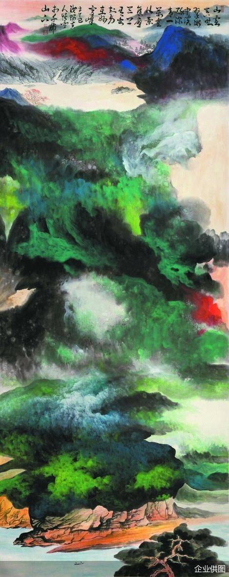 第一跳:从“青绿勾勒”到“有边界的画彩”。传统青绿山水以“空勾填色”为标志,色彩被严格锁入墨线。孙博文早期《白云缭绕香漫山》(1995年)仍守此律,但已用“顺笔皴”把色块拖出方向性,使色带成为“具速度感的轮廓”。这种“以色代线”预示了后期抽象符号的生成逻辑:色彩不再填充形体,而是自造形体。