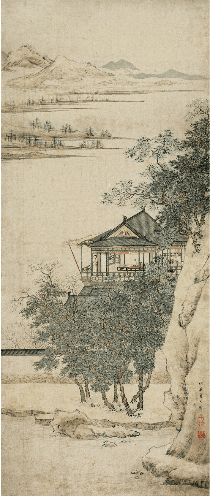 仇英《楼居仕女》,现藏于波士顿美术馆