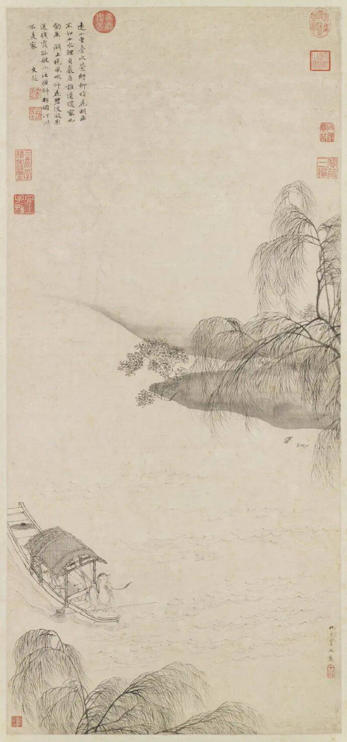 仇英《柳塘渔艇》,现藏于台北故宫博物院