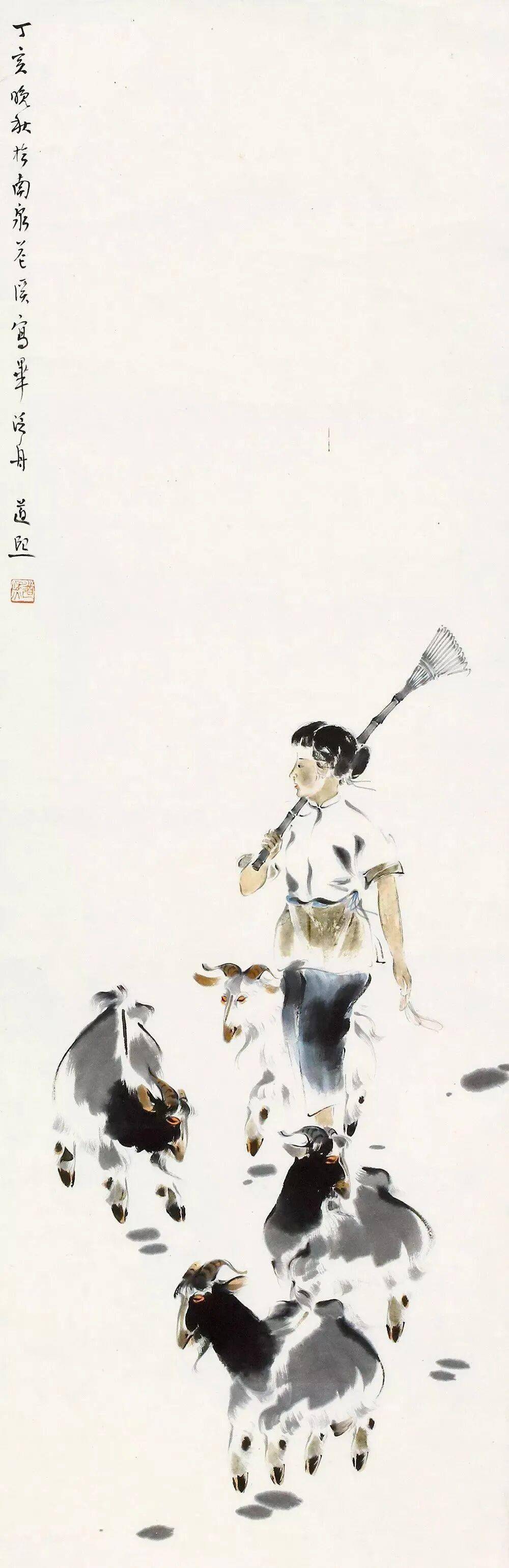 羊是他的动物画中画得最多、也是画得时间最长的,解放初期,为了加深对“羊”的认识,年轻的李道熙曾养了一只羊,观察其习性,并常年在牧羊区与羊为伍,写生绘画,吸收创作源泉。