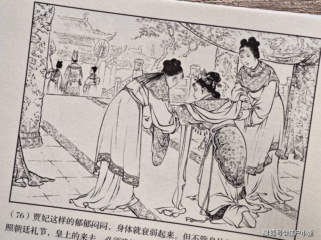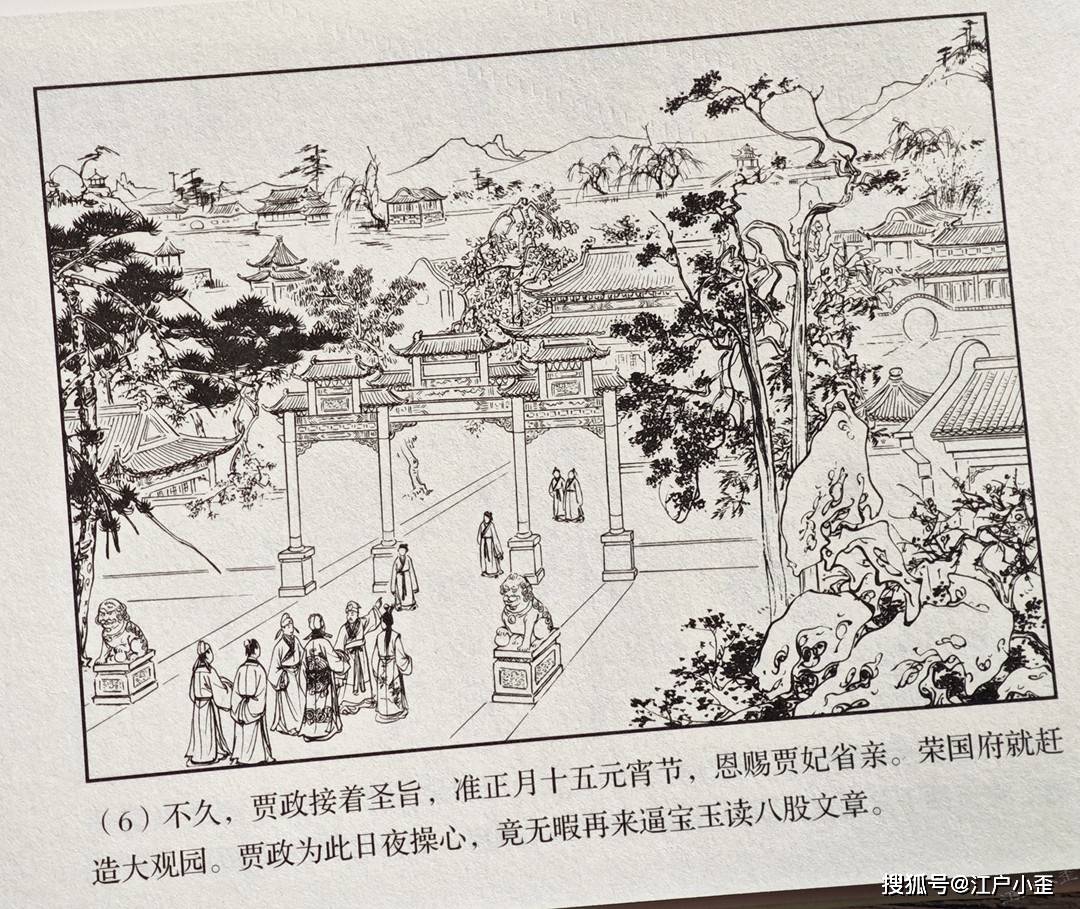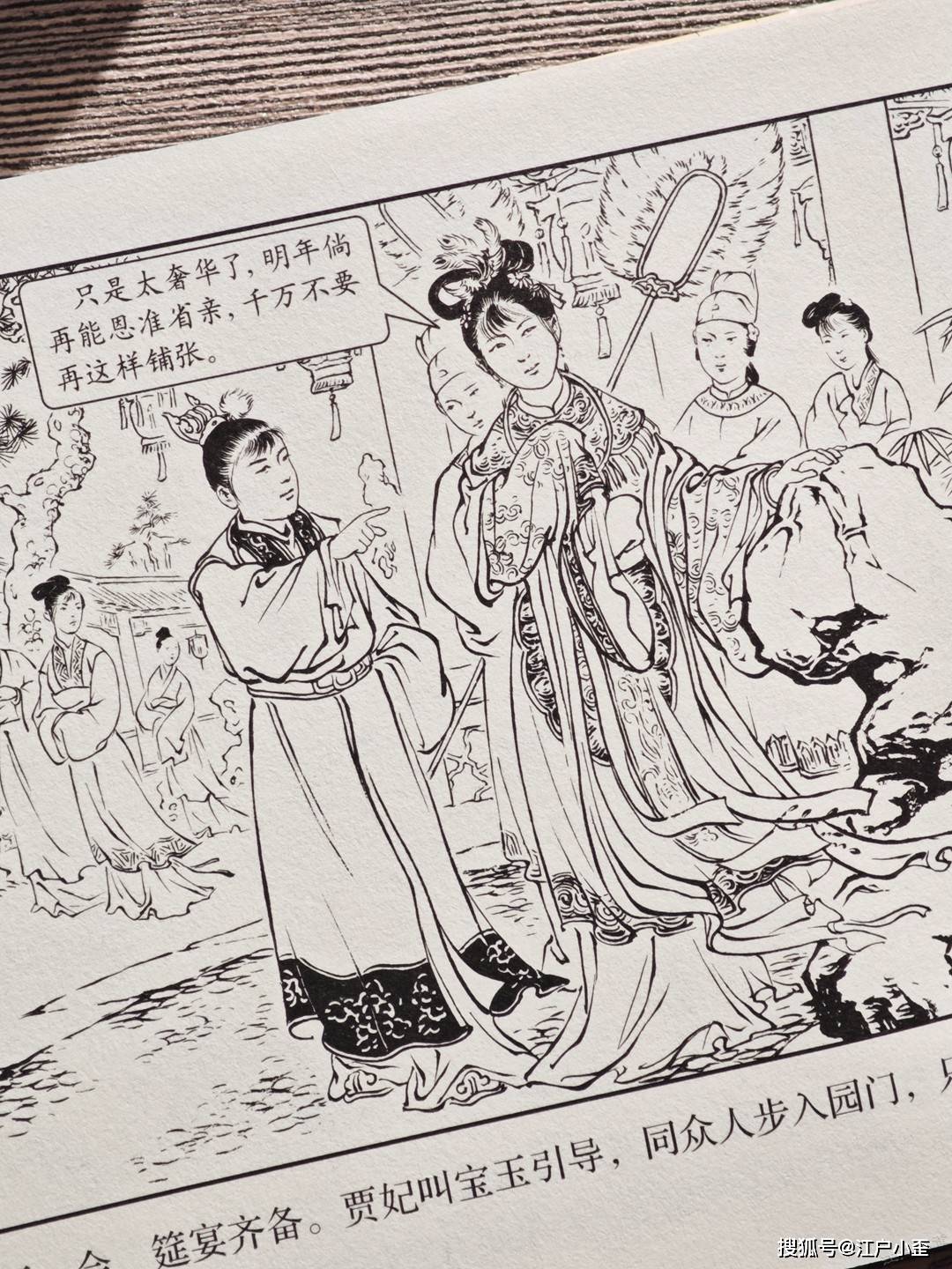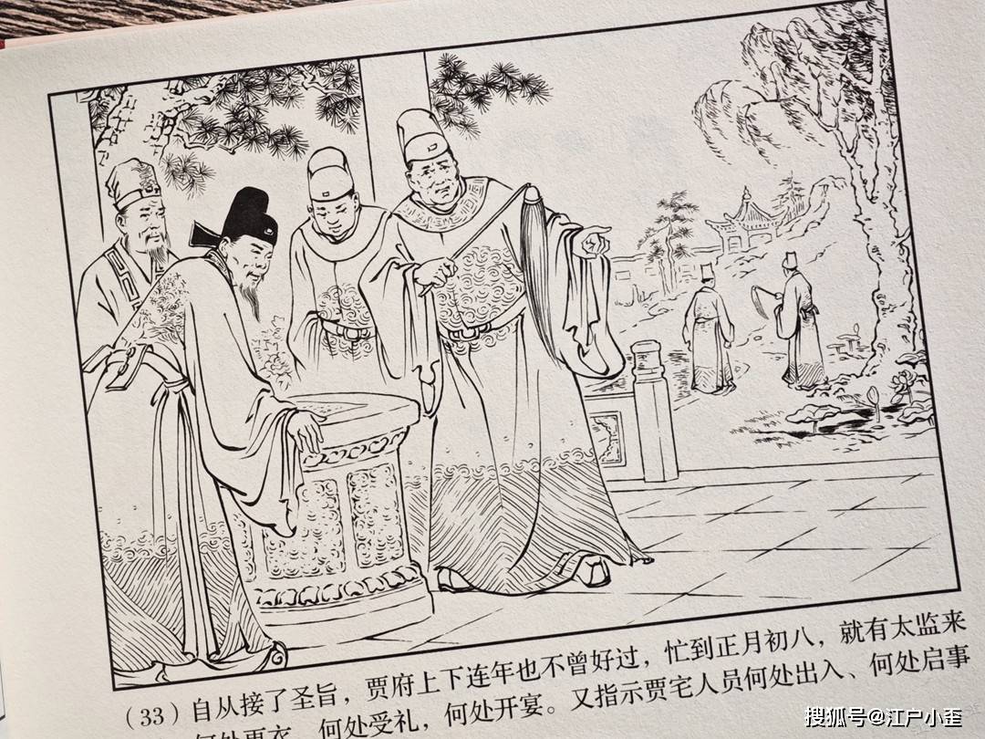 老红楼这套书规划得远不如三国那样系统,元春省亲这个重要剧情在《黛玉葬花》一册已经提到不少篇幅,而后又单独拎出来做了一本,请的是社外的李成勋和朱元红二位绘画。