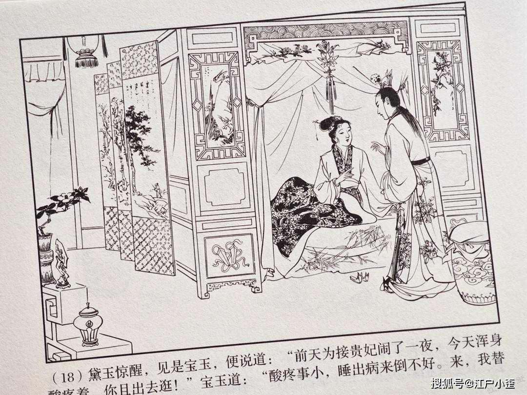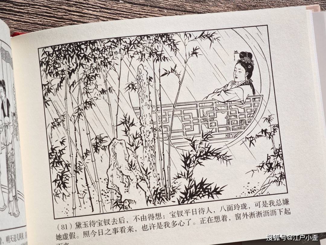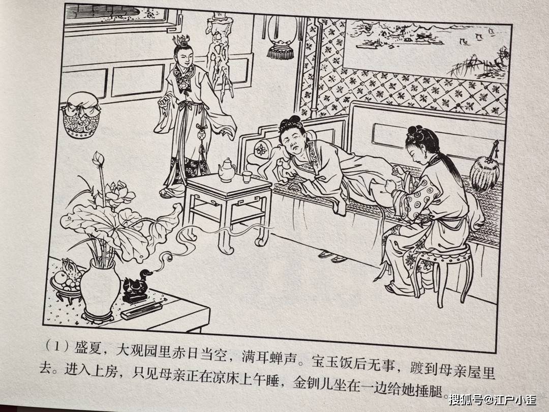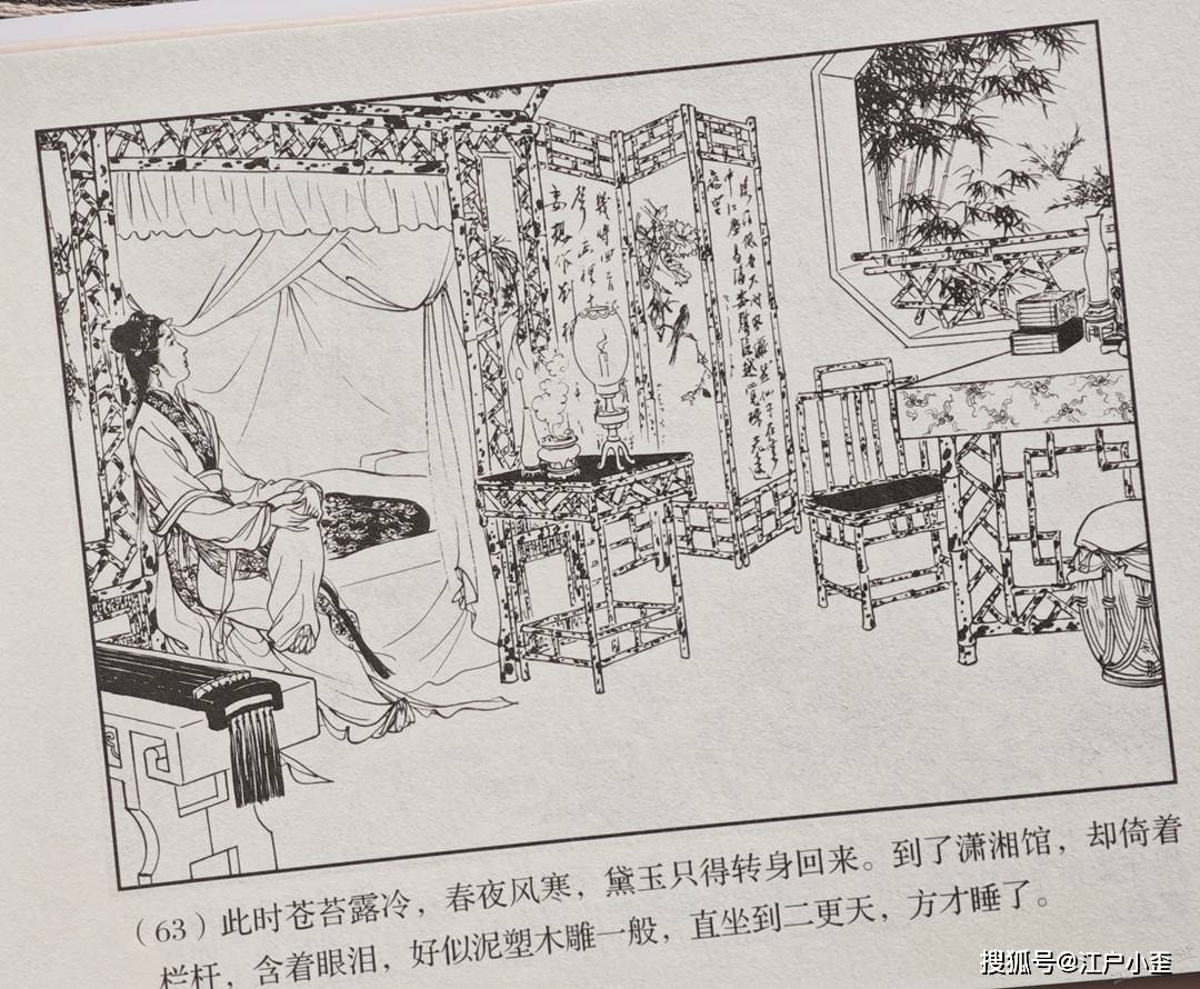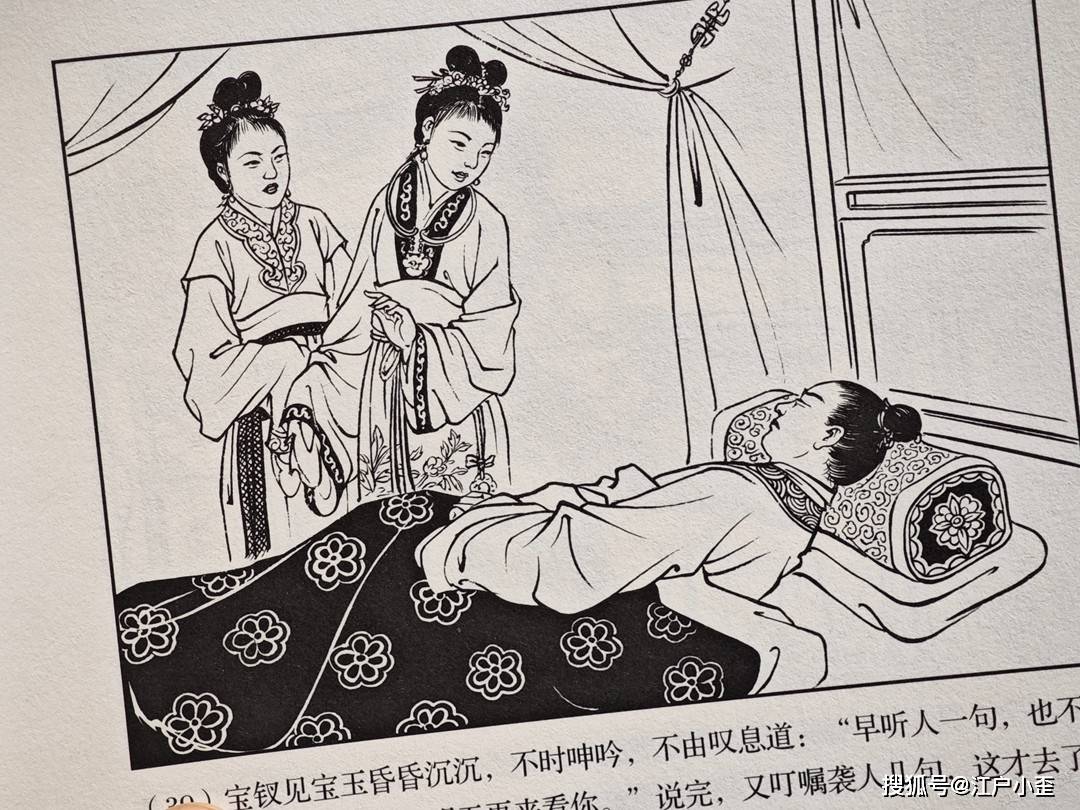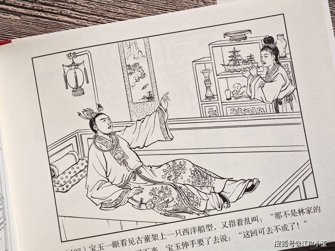 红楼梦的连环画不好编,更不好画,因为红楼表层故事“假语存”不过是闺阁闲情琐事,几乎全是文戏,极少有激烈冲突战斗等,缺乏舞台展示效果,至于小说深层次含义“真事隐”,要靠连环画去表现很难,插图组画类或许有更多发挥空间。用传统写实的白描去画红楼,很容易陷入场景人物雷同的赘述感。