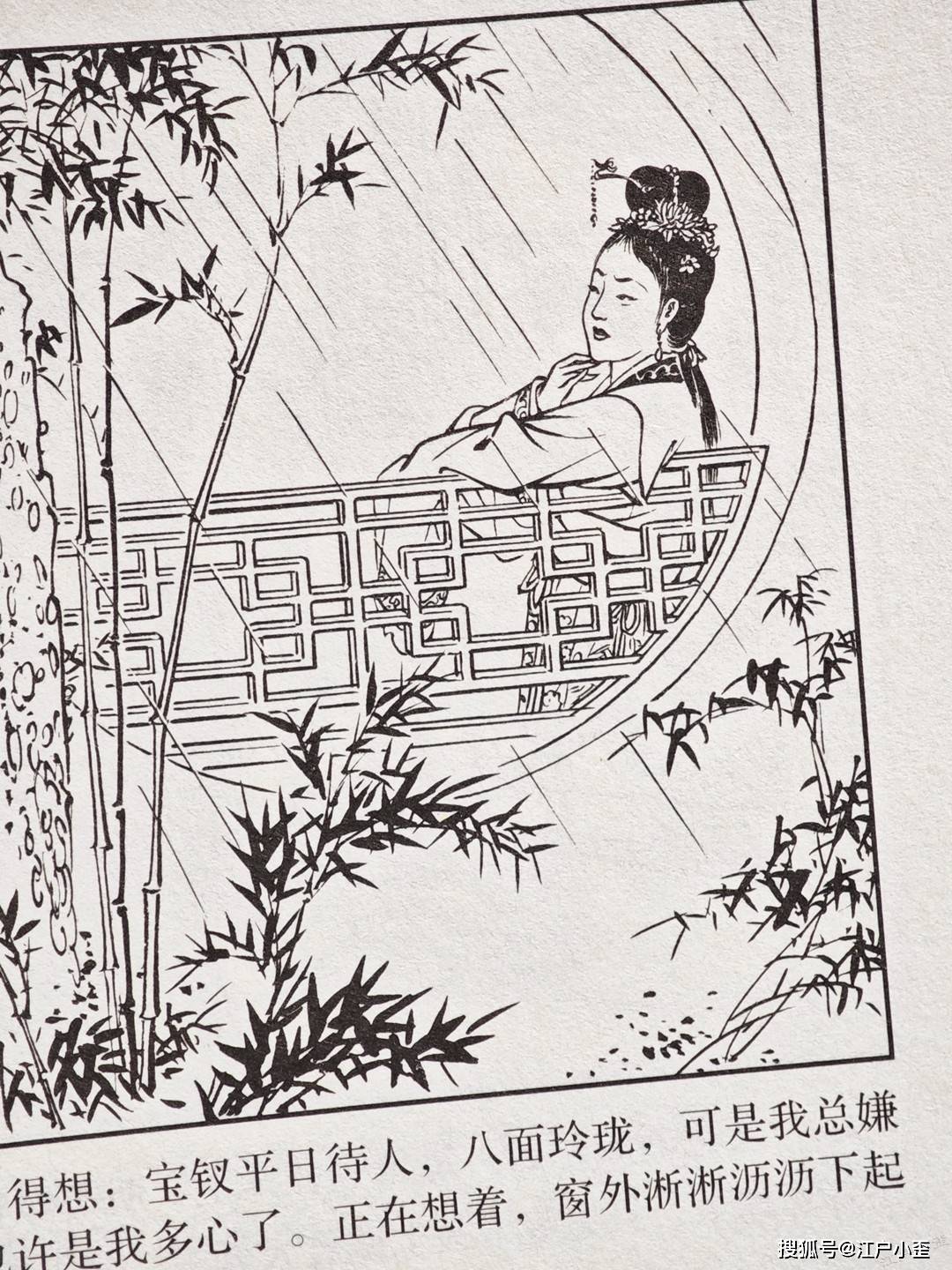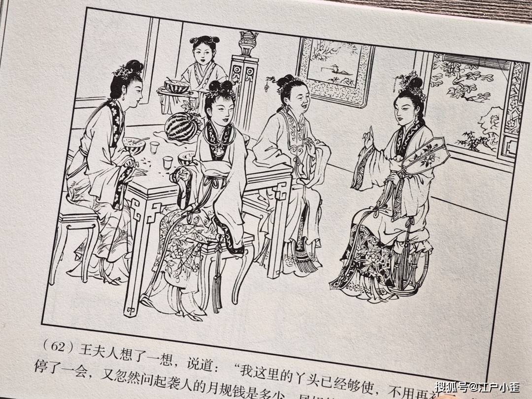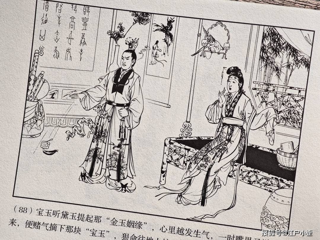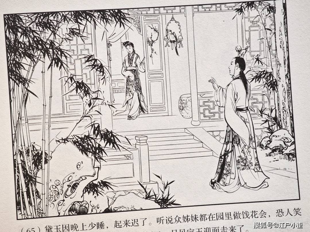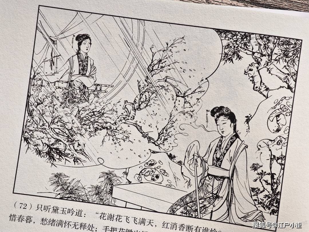 红楼梦的连环画不好编,更不好画,因为红楼表层故事“假语存”不过是闺阁闲情琐事,几乎全是文戏,极少有激烈冲突战斗等,缺乏舞台展示效果,至于小说深层次含义“真事隐”,要靠连环画去表现很难,插图组画类或许有更多发挥空间。用传统写实的白描去画红楼,很容易陷入场景人物雷同的赘述感。