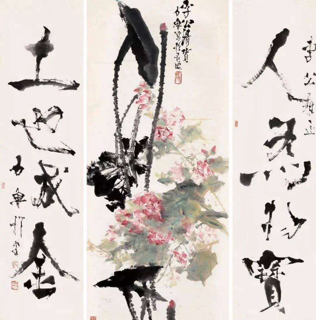 石鲁《芙蓉荷花·行书四言联》(嘉德2011春拍以4370万元成交)