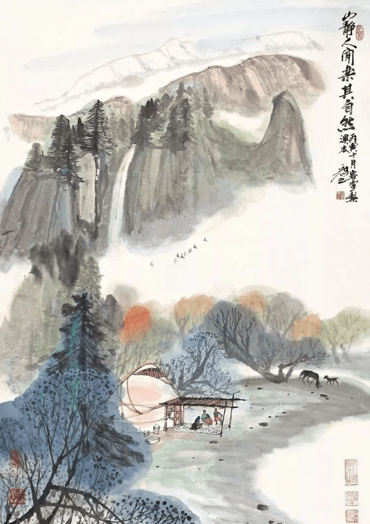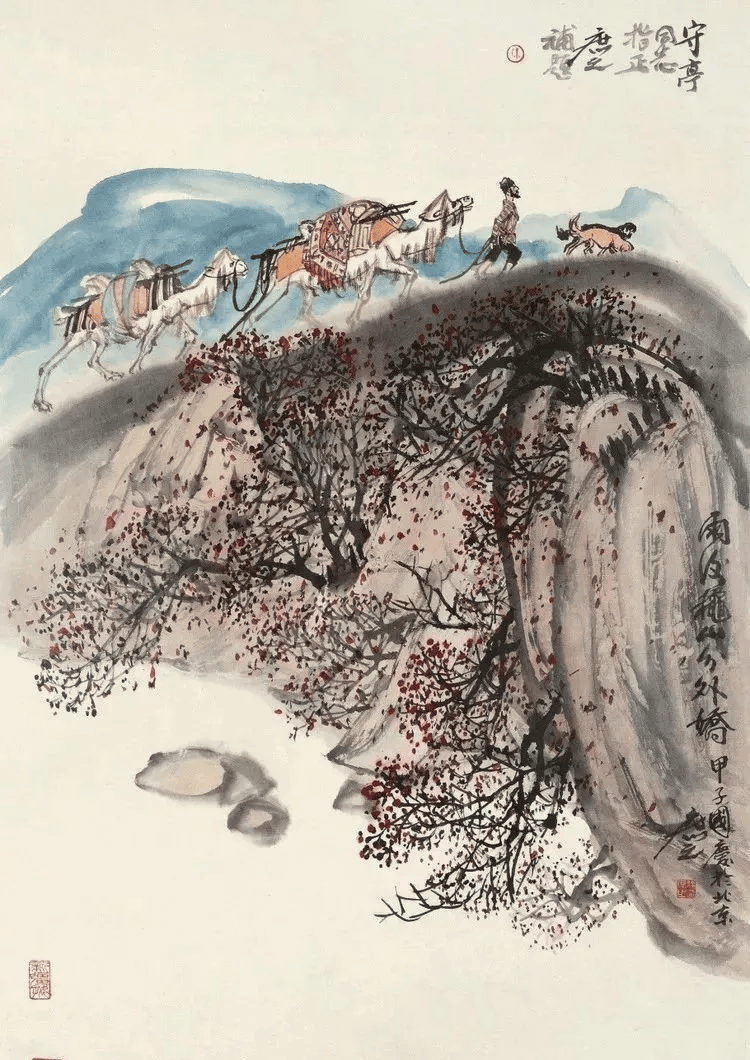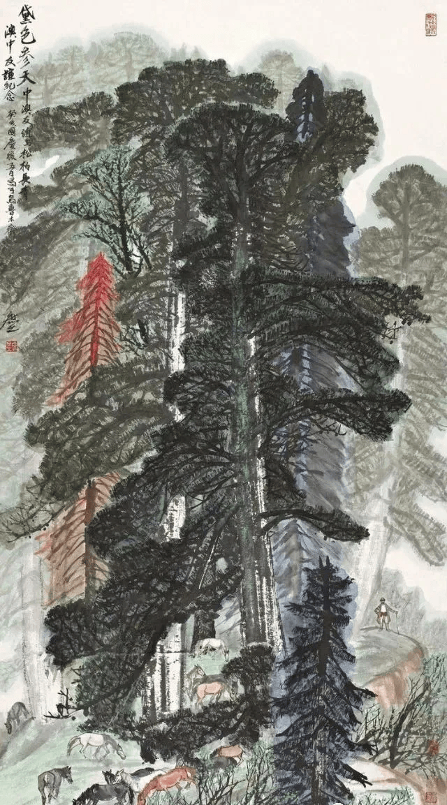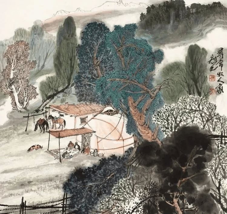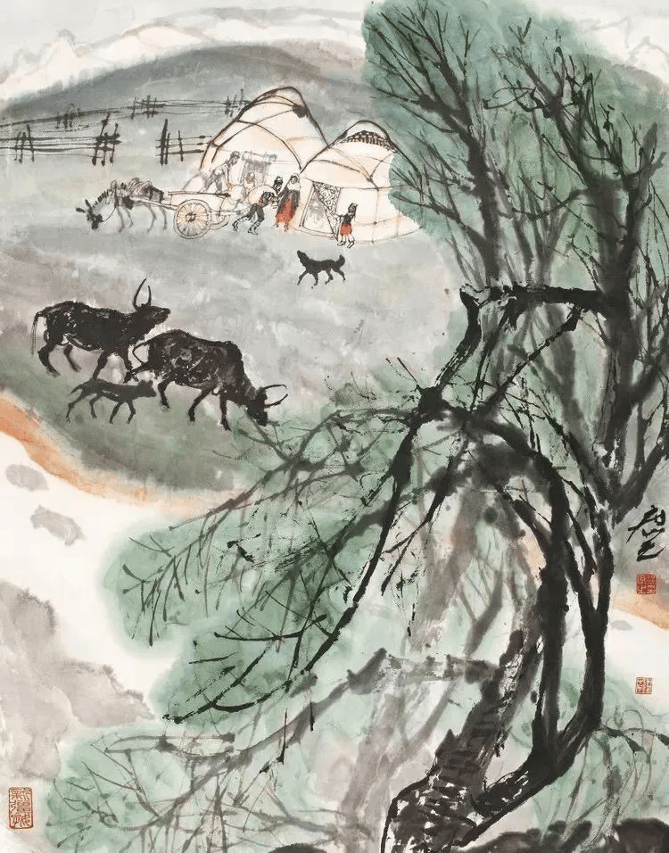 他的画风古拙而朴茂清新,构图自然、气势天成,充满生活意味,把各族人民的日常生活、生产劳动与地区特有的自然风光融为一体,形成不同于传统山水画的新的格局。