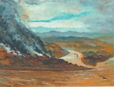 在梳理中国美术馆藏长江题材美术作品时,就能发现油画家宋步云,版画家刘岘、王琦都曾描绘过嘉陵江畔的渔舟,而国画家李斛、宗其香则是以刻画男人体的方式描绘嘉陵江畔的纤夫,展现出强烈的现实主义意识。吴作人油画《重庆大轰炸》,真实记录了吴作人亲眼所见日本侵略者轰炸重庆和嘉陵江的场景,与清末游弋在长江上的外国军舰、南京大屠杀的记忆等一并构成了长江血泪史的叙事部分。换而言之,长江这条母亲河,目睹了近代中华民族的屈辱与血泪。
