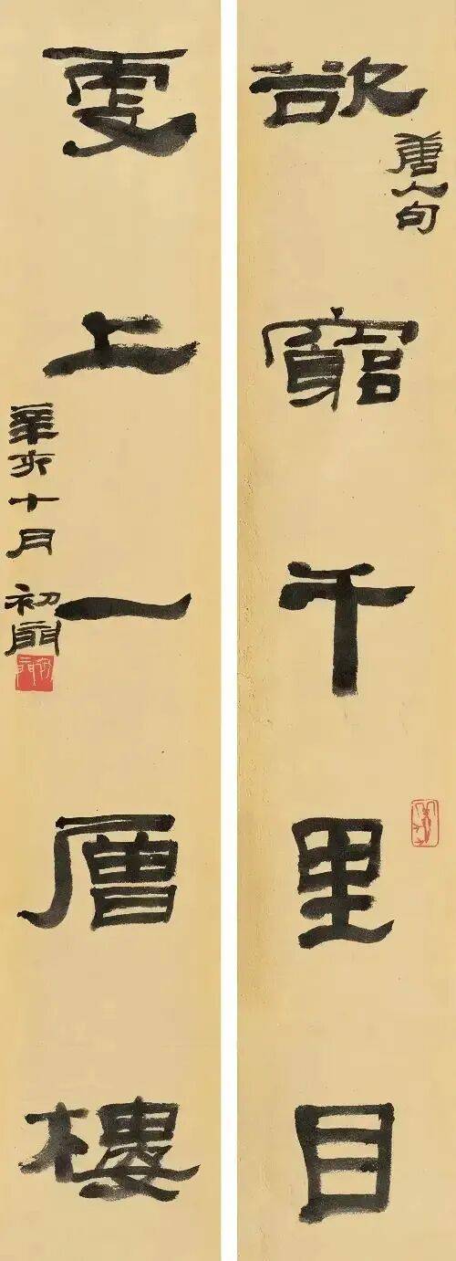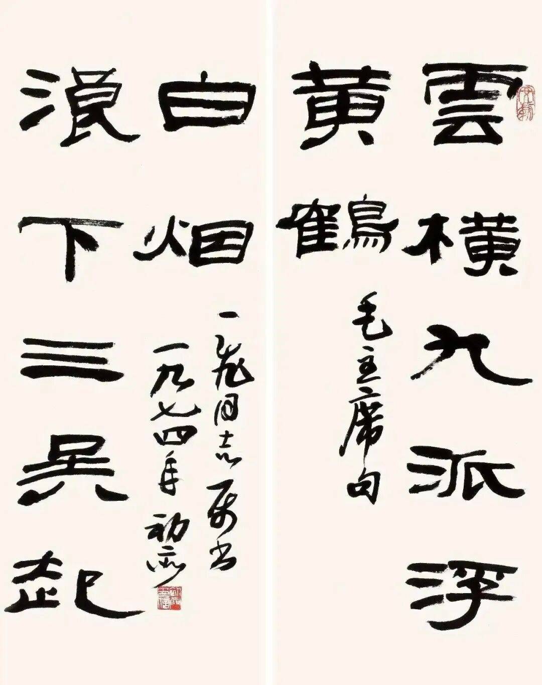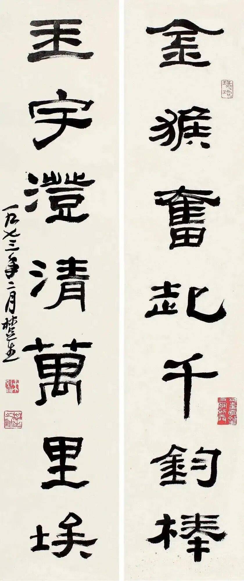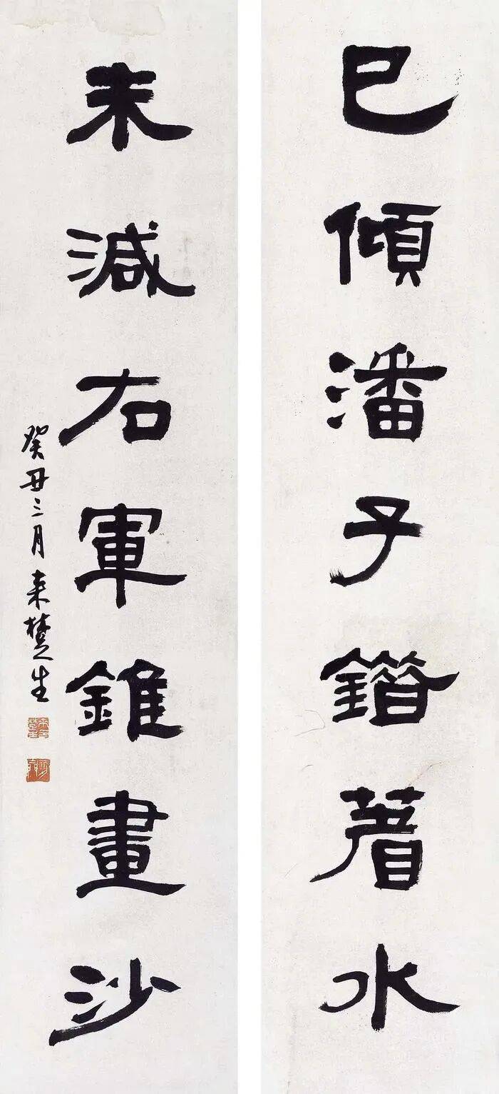 先生一生沉潜传统、锐意创新,早年受业于潘天寿等名师,后长期寓居上海,以深厚的传统学养为基,凭过人胆识与才情,在笔墨刀石间开辟出个性鲜明、独树一帜的艺术天地。其书法融金石篆刻之刚劲于笔墨流转,作对联更是韵致与风骨兼具,为后世留下了无数经典佳作。