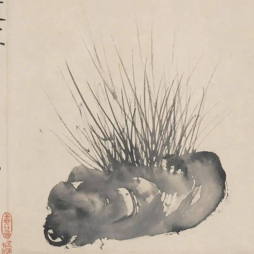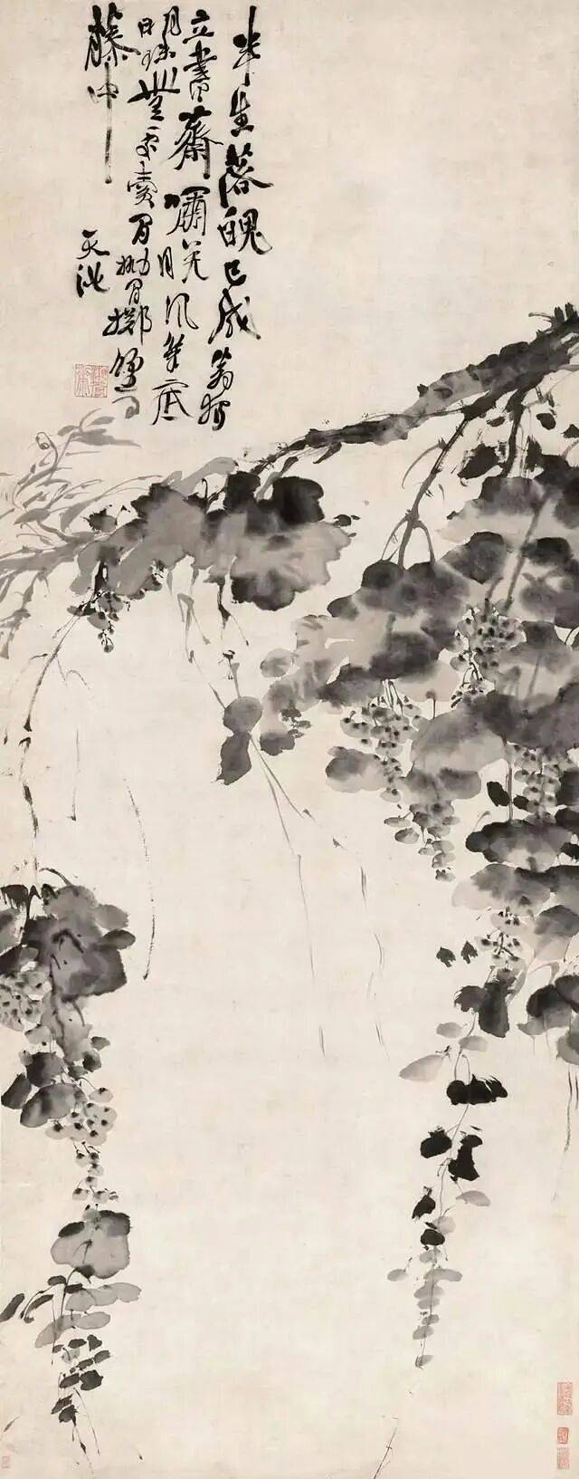 你看他的《墨葡萄图》,没有工笔的精描细绘,没有设色的浓妆艳抹,只有浓淡不一的墨色,在纸上肆意游走。藤蔓如乱草,却乱得有筋骨;果实似残珠,却残得有精神。那不是对葡萄形态的简单摹写,而是他生命状态的投射——半生落魄,一腔孤愤,都藏在这墨色的浓淡虚实里。他的笔墨,没有刻意追求的章法,却处处皆是章法;没有刻意炫耀的技巧,却笔笔皆是技巧。因为那些笔墨,是从生命的最深处生长出来的,带着滚烫的温度,带着决绝的力量。