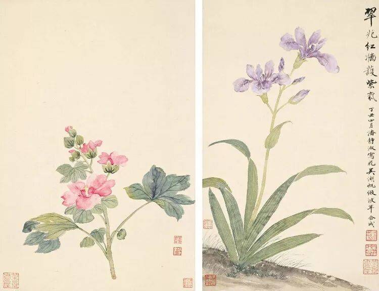 吴氏夫妇是包办婚姻,吴湖帆7岁,潘静淑5岁就定下的娃娃亲。情人眼里出西施,潘虽长得并不出色,但她却是吴湖帆的一生挚爱。步入婚姻殿堂后,俩人的生活更是是充满情趣与快乐的,“闺房之乐,有甚于画眉”。潘静淑也喜欢画画,两人有着共同的爱好,每日徜徉在吴家深深的庭院里,红了樱桃,绿了芭蕉。