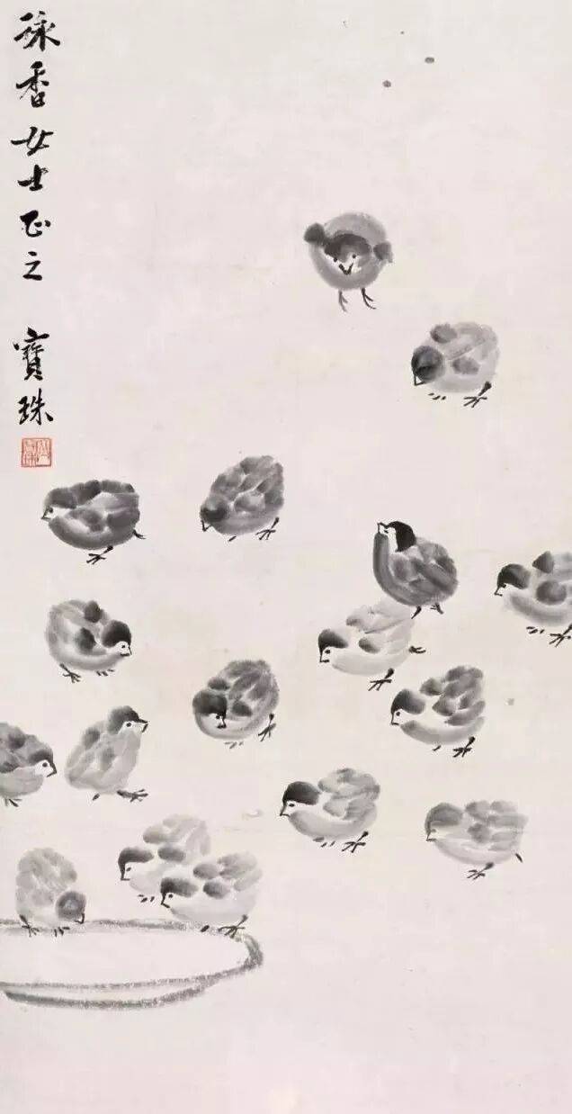 胡宝珠临摹齐白石的画有时竟以假乱真一次,齐白石看到画桌上一幅群鹅图,竟以为是自己所作,挥笔署款三存印富翁齐璜作于故都,并连钤三印过了一天再仔细品味才发觉是夫人的临摹之作,于是题跋更正:此小幅乃宝姬所临。