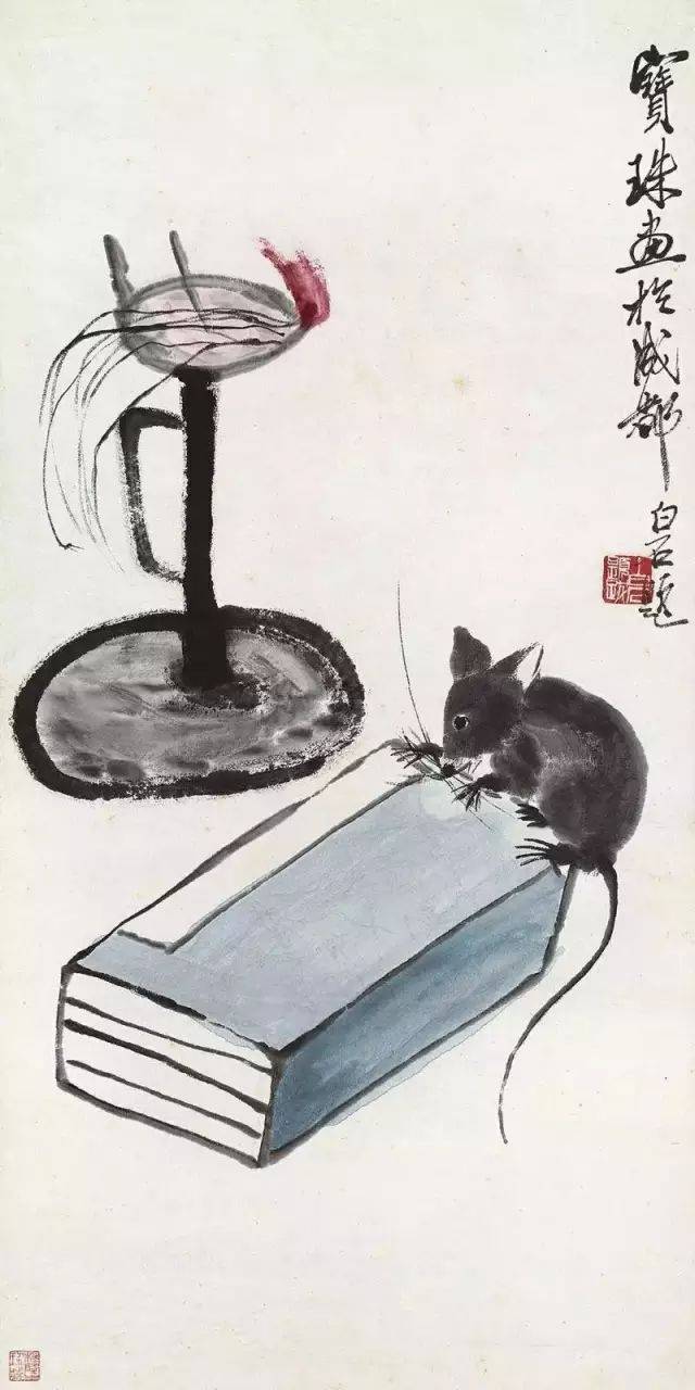 胡宝珠 齐白石 老鼠偷书 本幅齐白石(1864~1957)题:宝珠画于成都。白石题。