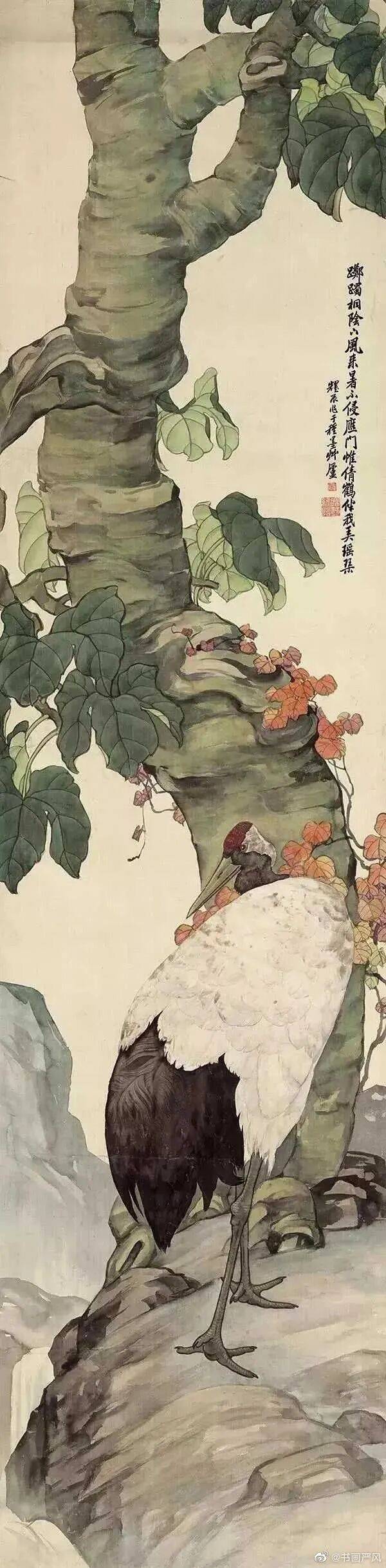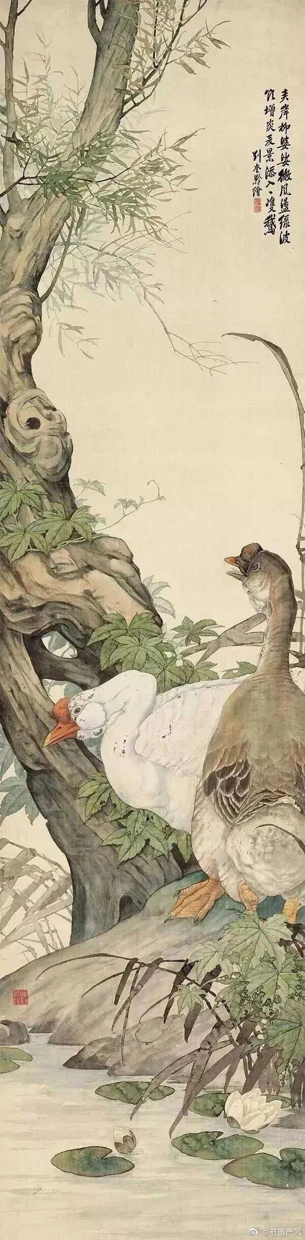 《走兽十二屏》是刘奎龄动物画法成熟时期的代表作,分别绘红枫双猴、秋柏双鹿、竹篱双犬、长城骆驼、三羊开泰、草垛双驴、柳荫单骏、秋林熊戏、崖瀑啸虎、柳下花牛、草树双狮、泉枫花豹等。所绘或为平日寻常所见的动物,或为西洋舶来的珍奇走兽,但都栩栩如生,画家不仅仔细描绘动物,同时也特别关注它们生活的环境,有些动物虽然是他不能亲在现场观察体验的,便借助乡间生活、异地旅行、对传统山水的琢磨和国外的图片资讯,发挥自己的想象力,将它们置于合情合理的环境中,这种对艺术灵感的调动,使他进入“法心源”的别样天地。刘奎龄先生的每件作品都有比较详尽的手稿,基本都是在几经推敲修改之后,再用墨线勾定。而在创作时,尤其是表现这些皮毛比较长的动物时,刘奎龄用其独创的“湿丝法”为之。