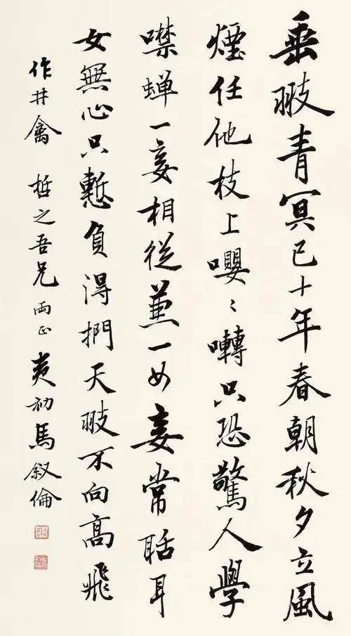 除了楷书这一书体写得好之外,他的行书也是同样的精彩,他的行书脱胎于“二王”,尽显洒脱飘逸的神韵,又吸纳了瘦金体的挺拔与明清书法的雅致,尤其将董其昌的笔意发挥得淋漓尽致。