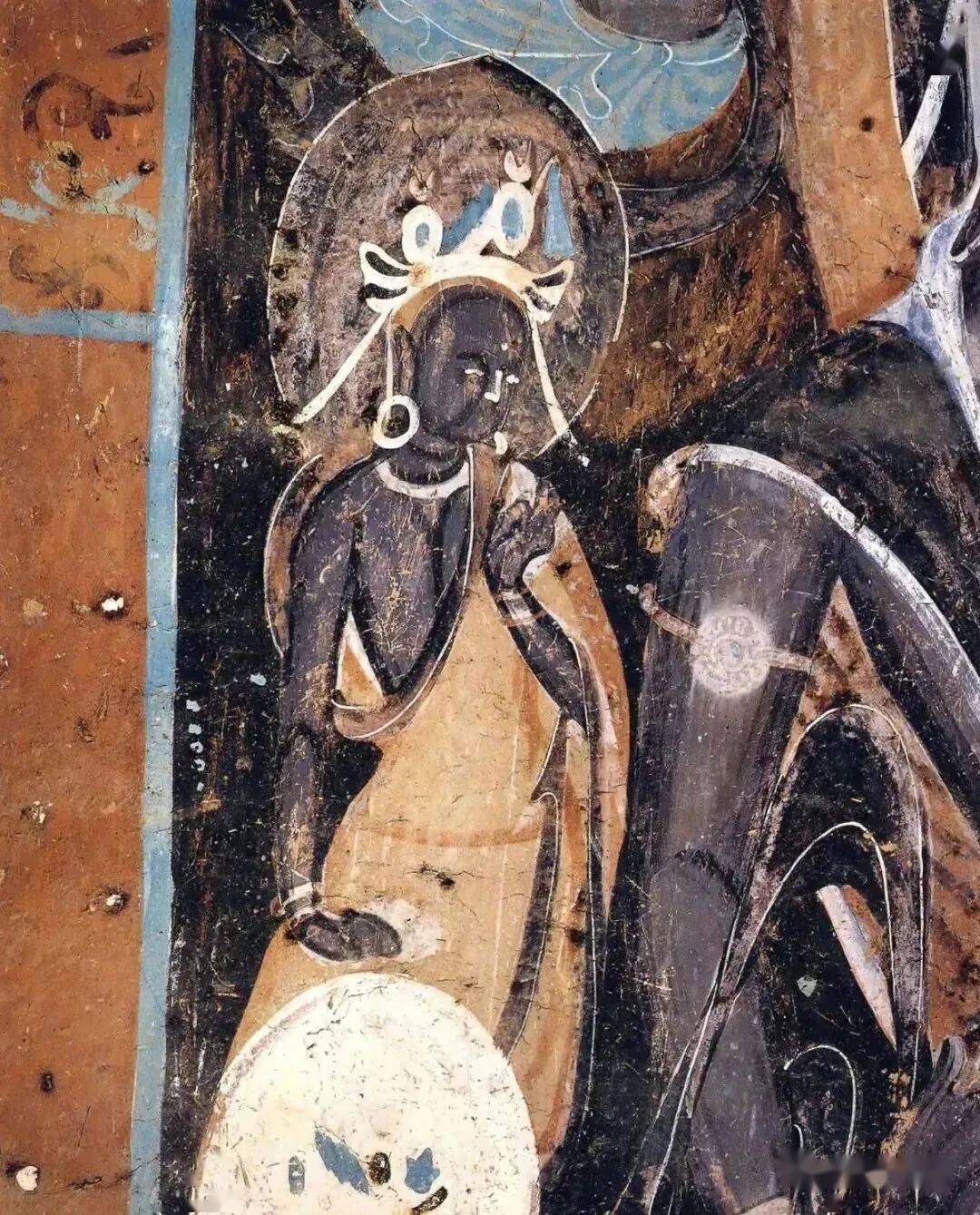 到了北魏中后期,由于受到同时代的本土民族艺术、魏晋画风的影响,民族传统神话故事等内容开始出现在壁画上,人物造型开始打破西域模式,形成眉目开朗、面貌清秀、面带笑容的潇洒飘逸画风。不难看出,始于顾恺之、成于陆探微的“秀骨清像”式南朝人物画风对其的影响。