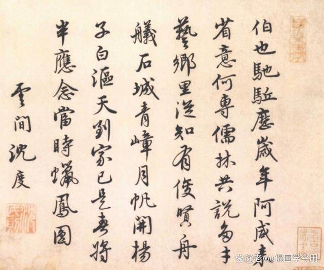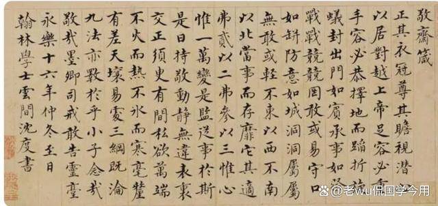 沈度的书法风格,婉丽而端庄,线条流畅而不失严谨,法度严密又有古意。即使是书法大家董其昌也曾对沈度兄弟赞不绝口,称其为文徵明、祝允明两家的楷模,并认为即使是他们,也未能超越二沈。