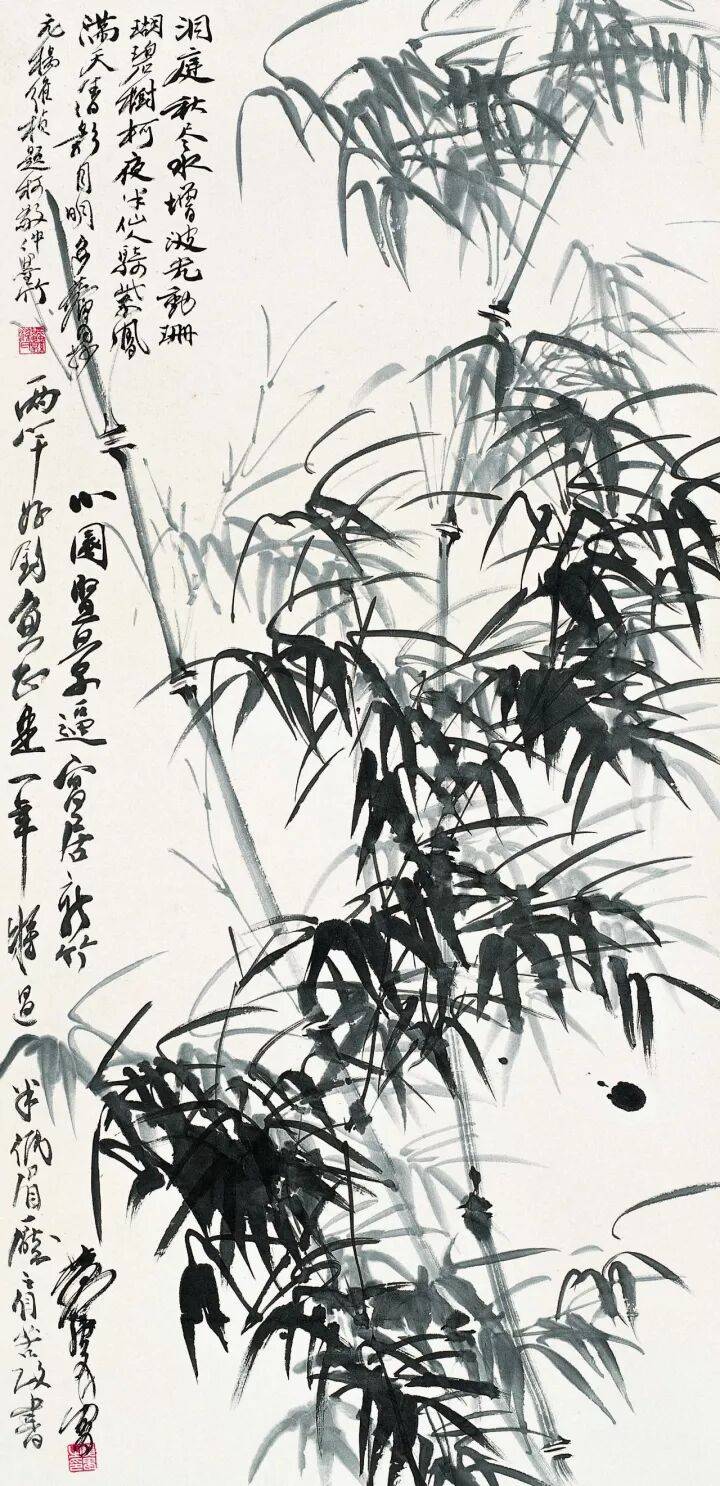 关于画竹:“宋元人画竹清新而画意蓬勃,如文同、李息斋等大师。至明初王绂、夏仲昭虽学前人法,尚有些生活气息。”“至明嘉靖后多自摹拟而来,致形成公式。到清代冬心、板桥不过玩弄笔墨而已,写形能力极微,所谓神形兼备,如不下功夫解决造型,传神难得依据。”