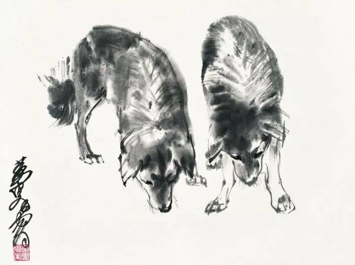黄胄《双犬》1979年