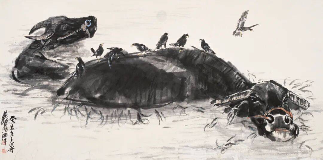 关于画牛:“古时画牛是一大科……宋以前已创造了完美的形式和技法。”“宋人画牛造型竟无一位超出唐《五牛图》者。宋以后每况愈下。”“至明代常见专门工画牛者,至清代即不多见,工于牛者竟然一人皆无,亦属怪事。”他分析“每况愈下”的重要原因即在于“元明以后所谓文人画兴起,以不求形似为高,竟无高手出现,自是画家不求实际,清高自命,或以书画自娱,以致使宋以前即达高峰的画科停步不前。”