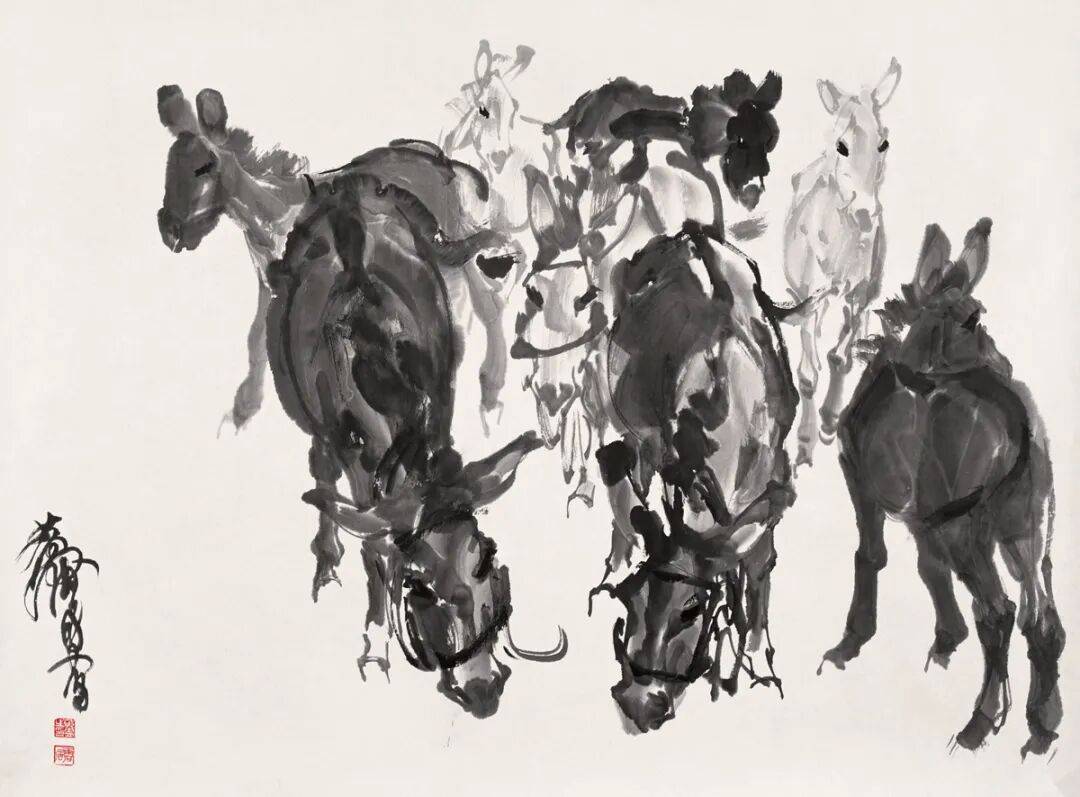 甚至对他最擅长画的驴,也说过:“画驴半生,动态尚不能掌握,熟习一种动物难也。”“文革”期间,他被分配去饲养驴,依然深憾自己对驴的观察、掌握得不够:“画此物近三十年,牧养驱车亦两年余,人亦云善画此物者。今于街上偶见驴群欢腾活跃嘶鸣而过,皆是笔下从未有者,归来摹画数纸竟拙劣如此,毫无生气,可见低能。学画者若不能勤苦奋发,反复实践,终生难得作出点成绩也。若能有点成绩,亦决非轻而易举偶然获者也。”