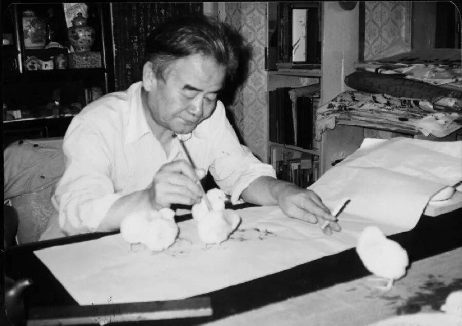 1985年黄胄在家中画小鸡