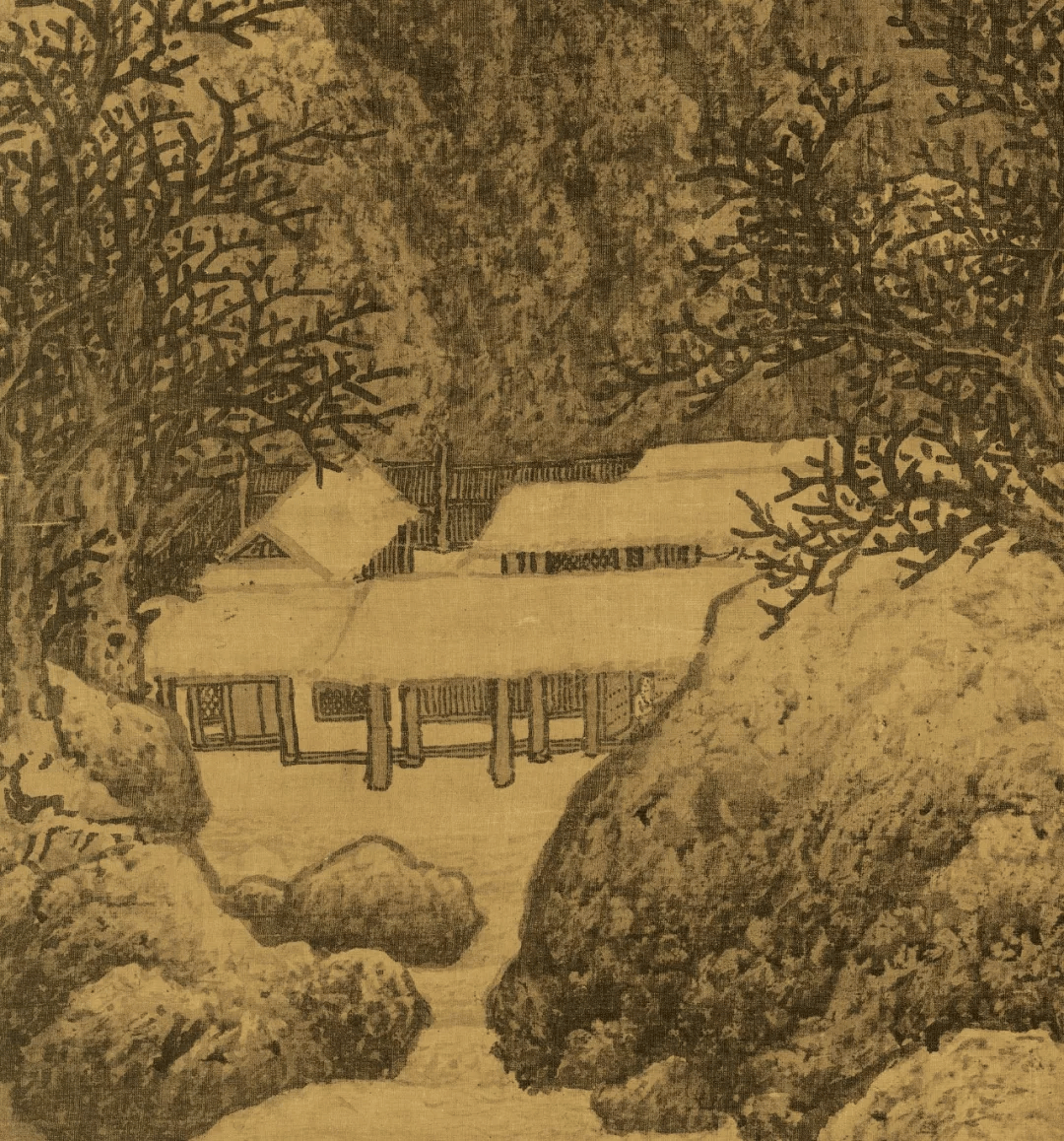 他留下的《雪景寒林图》,寂静如夜,气势苍茫,北方冬日雪后的山林气象一目了然。在这群山巨石、枯木寒柯之下,屋舍中正有一人张门而望,这一不算清晰的瞬间动作,使整幅画更加幽静。