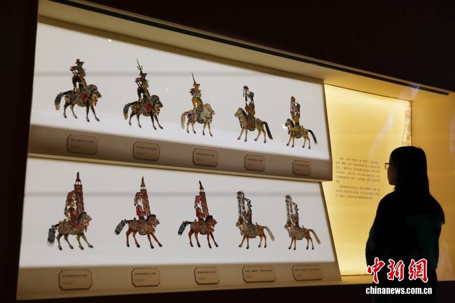 1月29日,“跃马扬鞭——马年新春文化展”在北京中国国家博物馆开幕。展览遴选与马相关的精品文物120余件/套,全方位、多角度展示出马在中华文明长卷中的千姿百态,生动阐释马在中华文化中的深厚内涵和时代价值。图为参观者参观皮影。中新社记者 王紫儒 摄