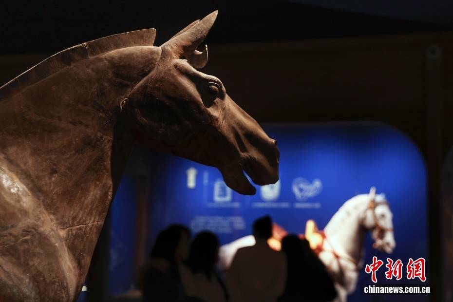 1月29日,“跃马扬鞭——马年新春文化展”在北京中国国家博物馆开幕。展览遴选与马相关的精品文物120余件/套,全方位、多角度展示出马在中华文明长卷中的千姿百态,生动阐释马在中华文化中的深厚内涵和时代价值。图为鞍马俑。中新社记者 王紫儒 摄