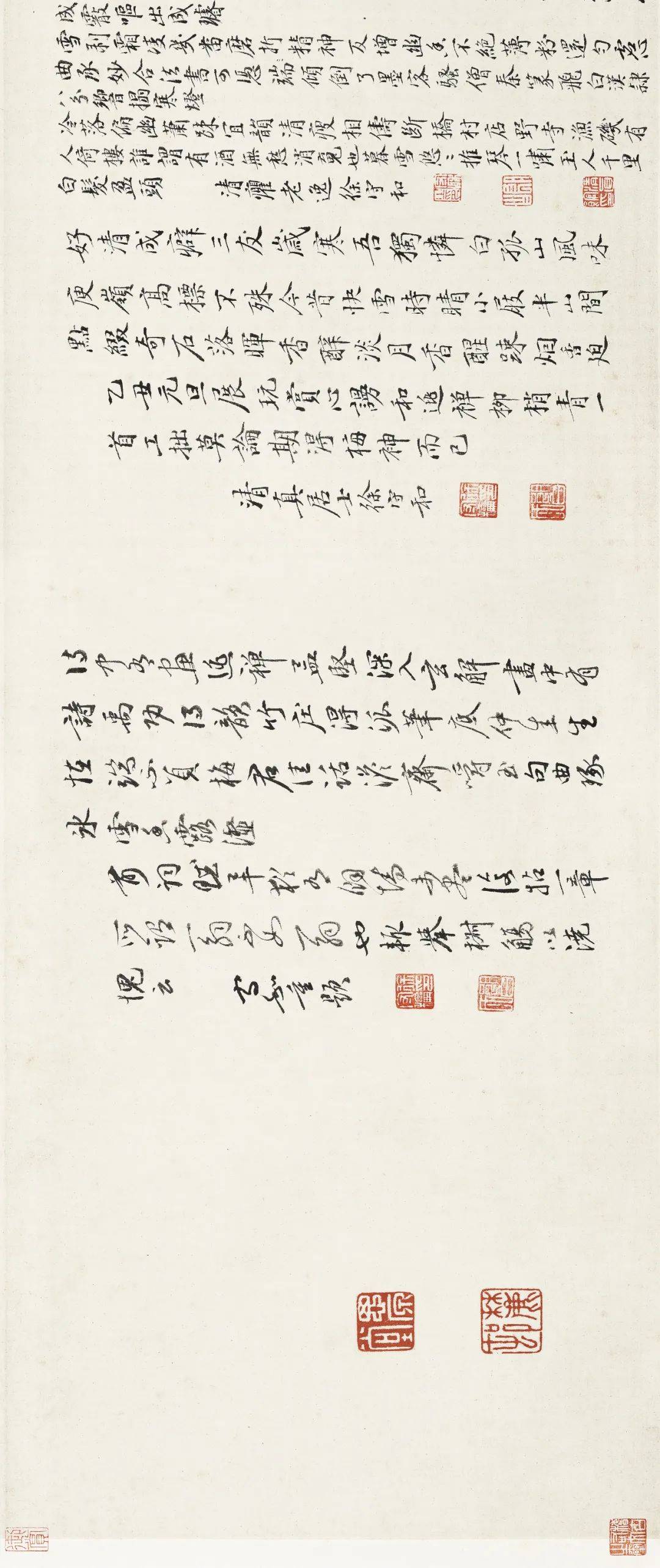 欣赏徐禹功的这件《雪中梅竹图》,正如同雪中赏梅,站在这幽香之下,深吸一缕清凉的雪意,仿佛是站到了洌洌的清泉之下,五脏六腑都被涤荡的干干净净,那一瞬间,心神为之一畅,人格竟然都有了升华!
