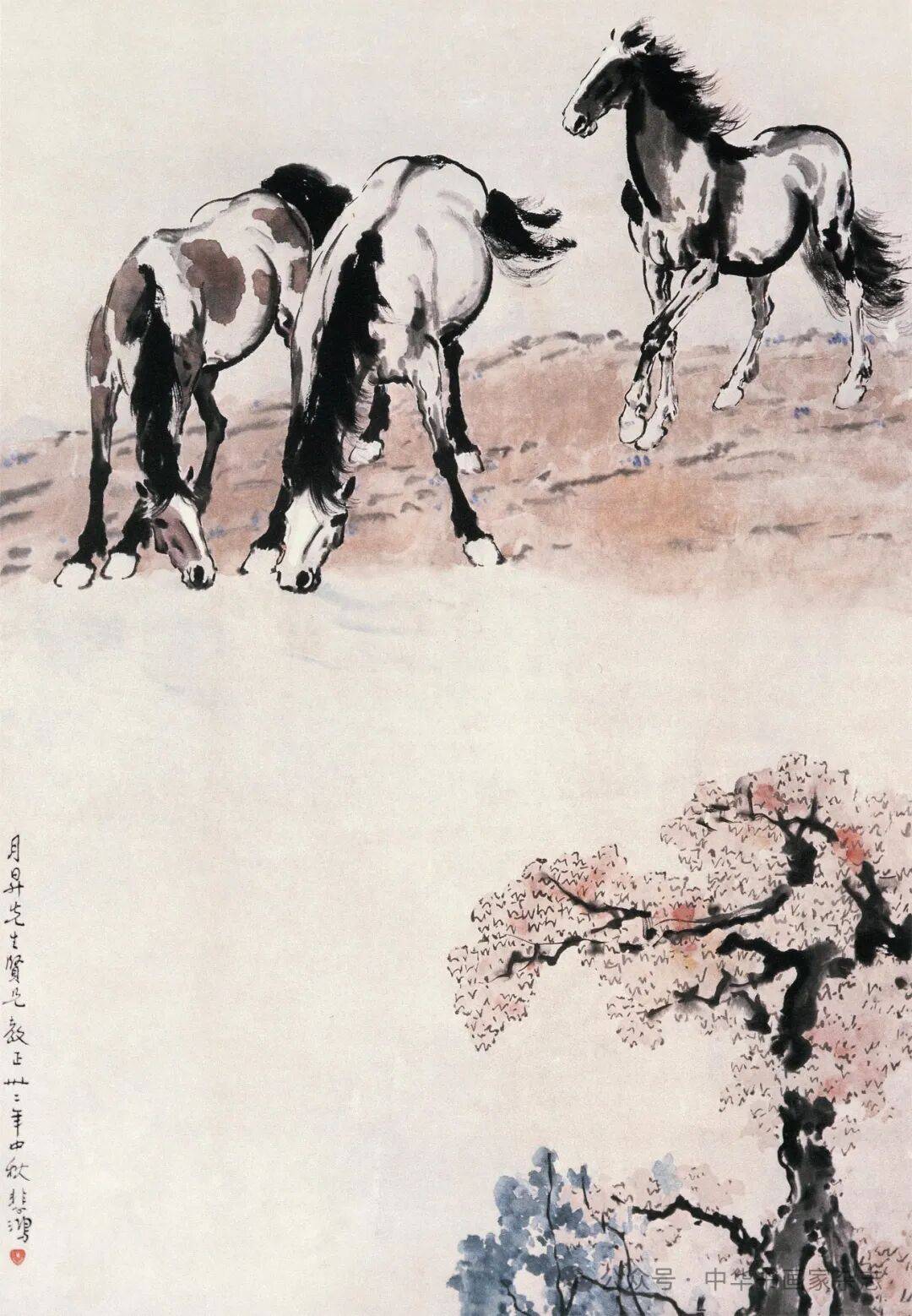 徐悲鸿 三马图 95×65cm 纸本设色 1943年 北京徐悲鸿纪念馆藏