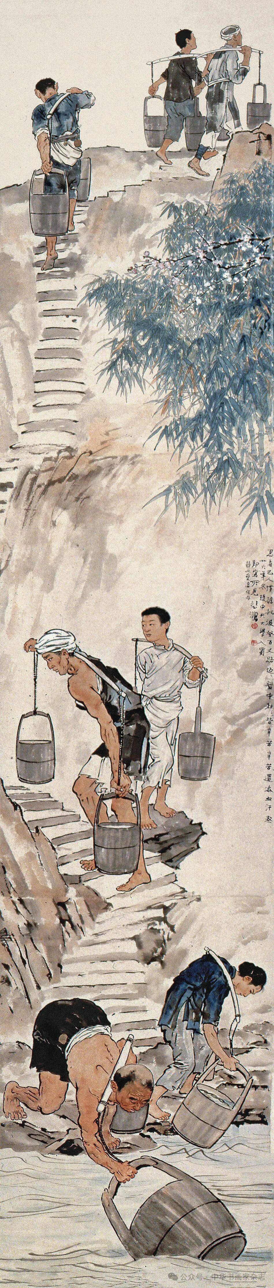 徐悲鸿 巴人汲水(附局部) 294×63cm 纸本设色 1937年 北京徐悲鸿纪念馆藏