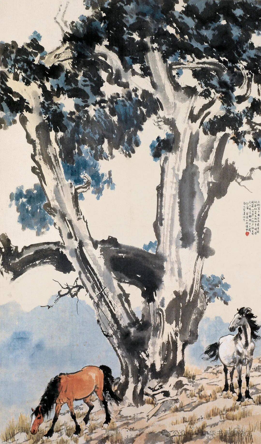 徐悲鸿 大树双马 131×77cm 纸本设色 1938年 北京徐悲鸿纪念馆藏