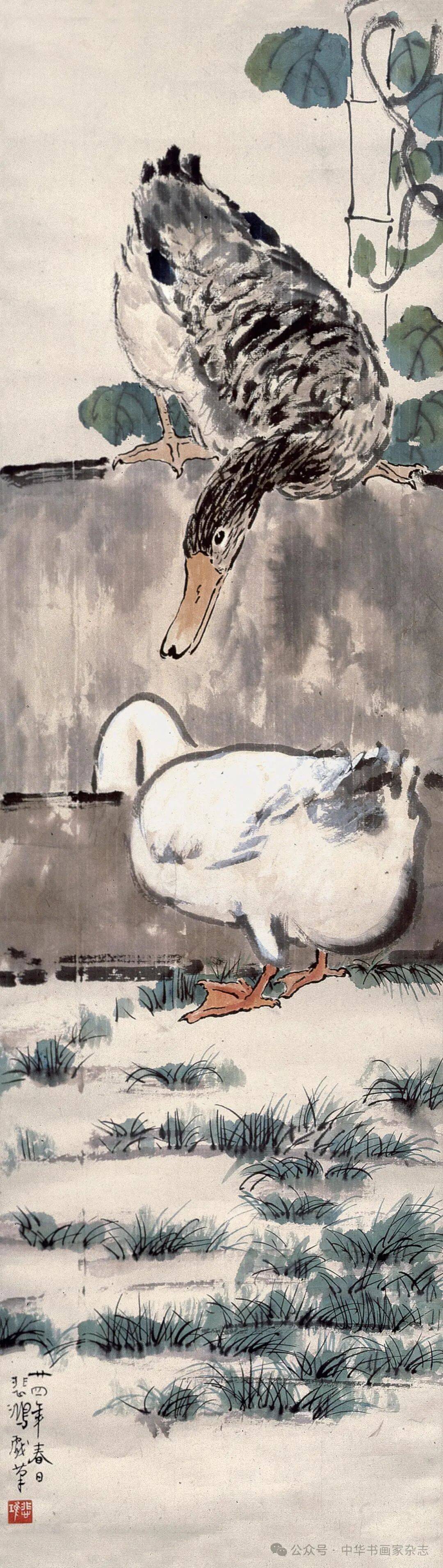 徐悲鸿 双鸭 113×33cm 纸本设色 1935年 北京徐悲鸿纪念馆藏