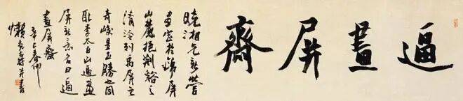 有时候, 为了整体构成的需要, 作者似乎故意制造错漏字, 增设补白, 用以调整字序、字列、篇幅及其空间关系。早年用笔上的恣肆率意, 如今内化为空间形式上的恣肆率意。它标志着潘天寿对传统成规的反叛与突破, 体现了以『观赏』而不是『阅读』作为书法艺术首要目标的美学思考。