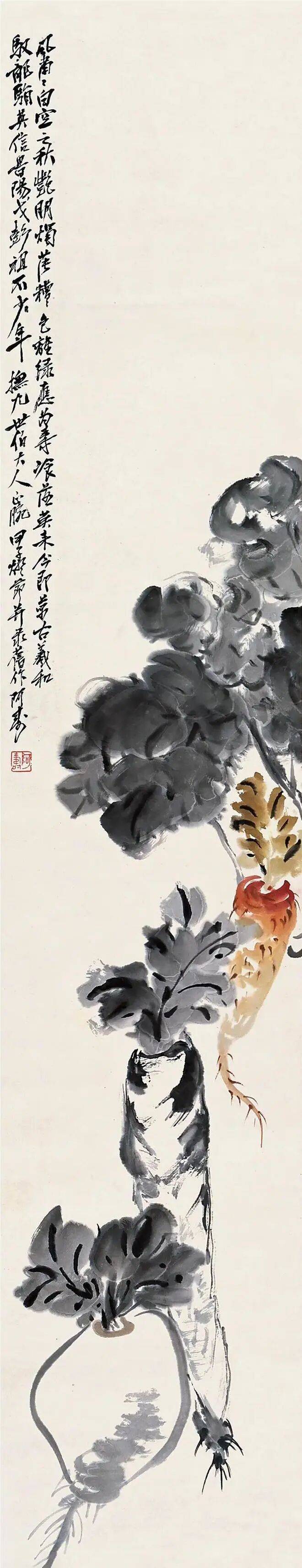 虽然潘天寿的书法生涯比其绘画生涯还要长, 书画同源和诗书画印四全的传统观念又占据着他的显意识层, 因此以画家为第一性的观察立场未免有些偏颇, 但通过画家之眼所筛选接收的形式和观念的信息, 与一个单纯的书法家毕竟有着很大的不同。如果从他存世更多面貌更丰富同时也更具创造性的绘画题款中探寻这种内在联系, 将获得更深刻的印象。