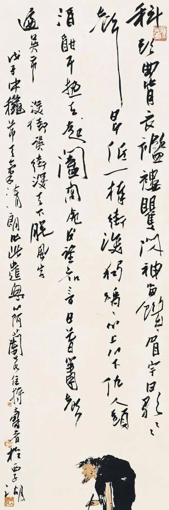 他冲决了温雅蕴藉、中锋用笔的中庸美学规范, 对现代社会夸张力量夸张节奏的生活秩序独有会心, 却仍然恪守着『字形』与『神采』、『如也』与『见道』相辩证的传统艺术表现法则, 以及重人品、重修养、重格调的传统人文情怀。他将『观赏』的需要凌驾于『阅读』的需要之上, 调动种种视觉形式因素和履险出格、行不由径的魄力气度, 探索着书法艺术表现的最大值, 然而, 恰恰是这位被正统书家们视为离经叛道的艺术独行者, 顶着西潮澎湃和极左政治的压力, 肩负起了捍卫民族文化尊严, 从传统内部寻求价值体认和创变的艰巨使命。