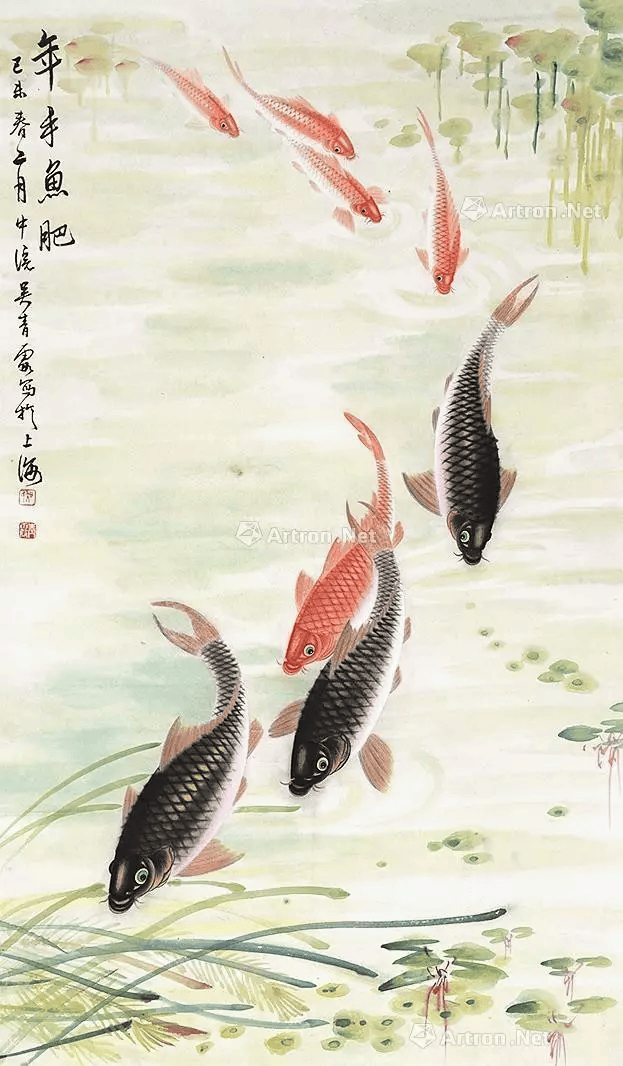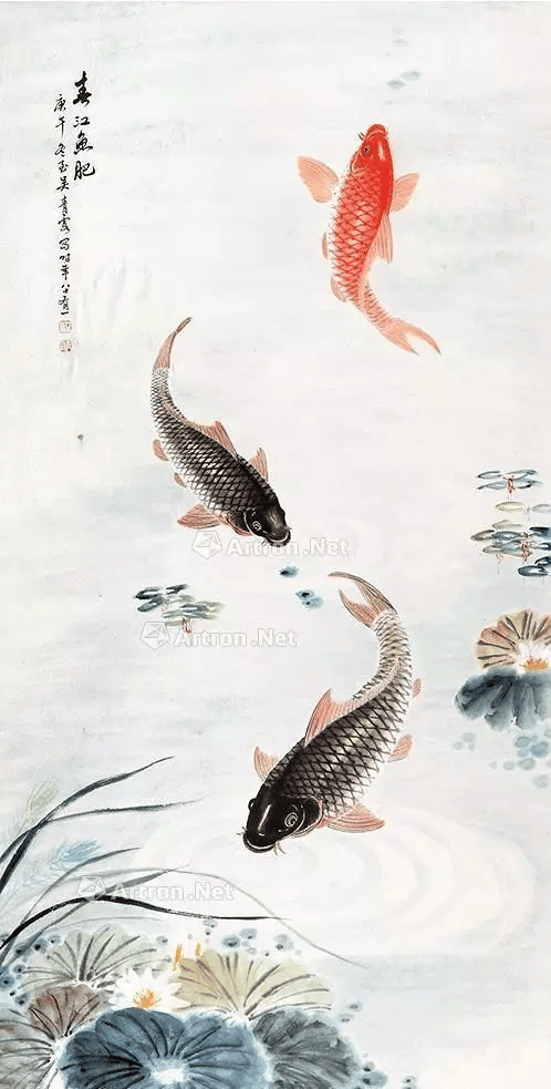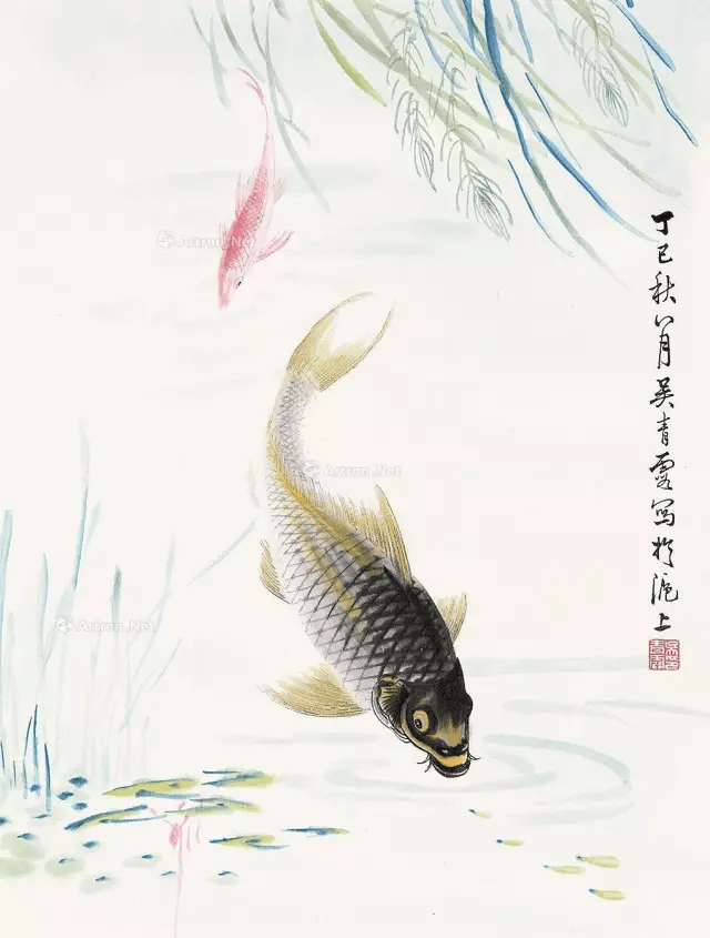 吴青霞所绘众多作品中,尤以侍女、芦雁、鲤鱼最为精彩,亦最具代表性。她所画鲤鱼尤为出色,不同凡响,鲜活异常;生机勃勃,情趣无限。她被人称为“鲤鱼吴”,在书画界有着极高的声誉。