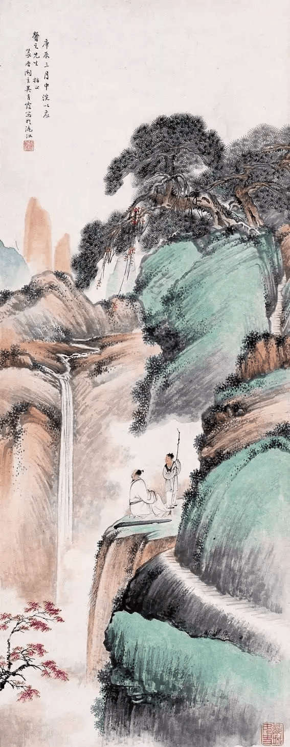 吴青霞的花卉小品,也画得情趣盎然,线条流畅,墨韵相生,色彩明洁秀丽。所绘侍女,衣带飘飘,眉目传情,颇见李公麟,唐伯虎,仇十洲之遗韵。她山水画创作极见传统功底,即呈南北二宗之象,又有元明风骨,儒雅清健,笔墨多宗唐寅,文征明。画山水,她强调师古人,更要师造化。她曾六上黄山,晚年仍不顾年迈,不辞辛苦,肩负画夹到全国各地名山大川写生作画,以达外法心源之境。