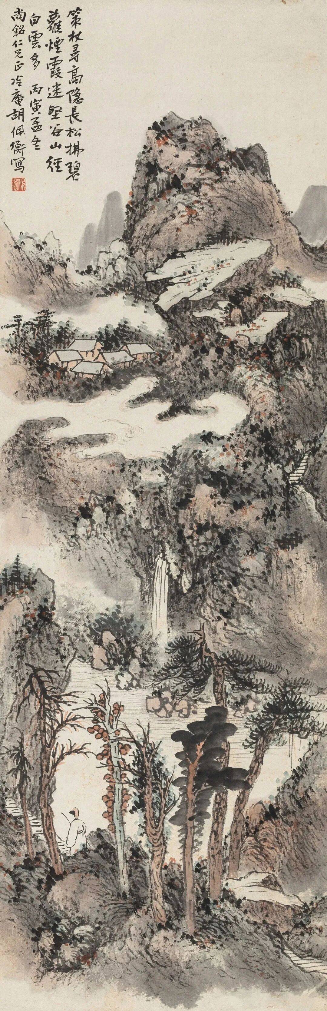 胡佩衡 策杖观瀑