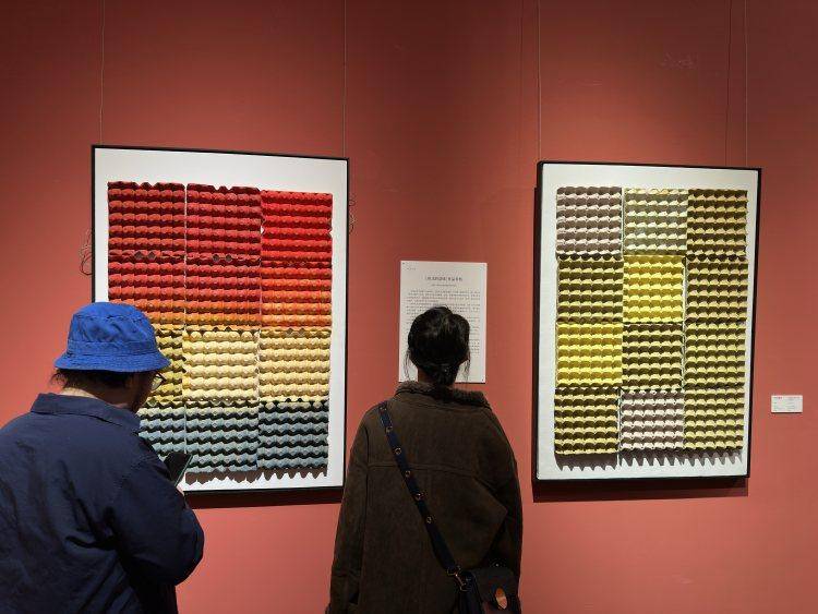 重庆美术馆(重庆画院、重庆国画院)专职雕塑家宗涛带来的作品《形式的意味》《残荷》前同样人头攒动。其中,《形式的意味》色彩对比尤为强烈,大家凑近都会发出惊呼“原来它就是鸡蛋托盘”。在宗涛看来,这是对“艺术不是高高在上的精英文化,它与大众的日常生活息息相关”的最好解读。