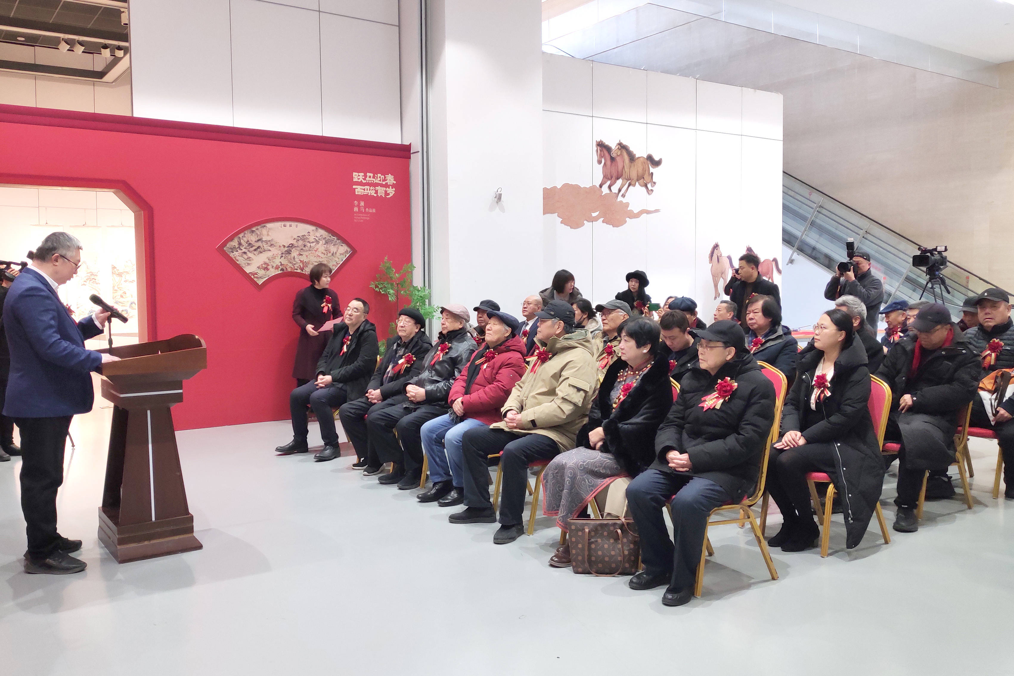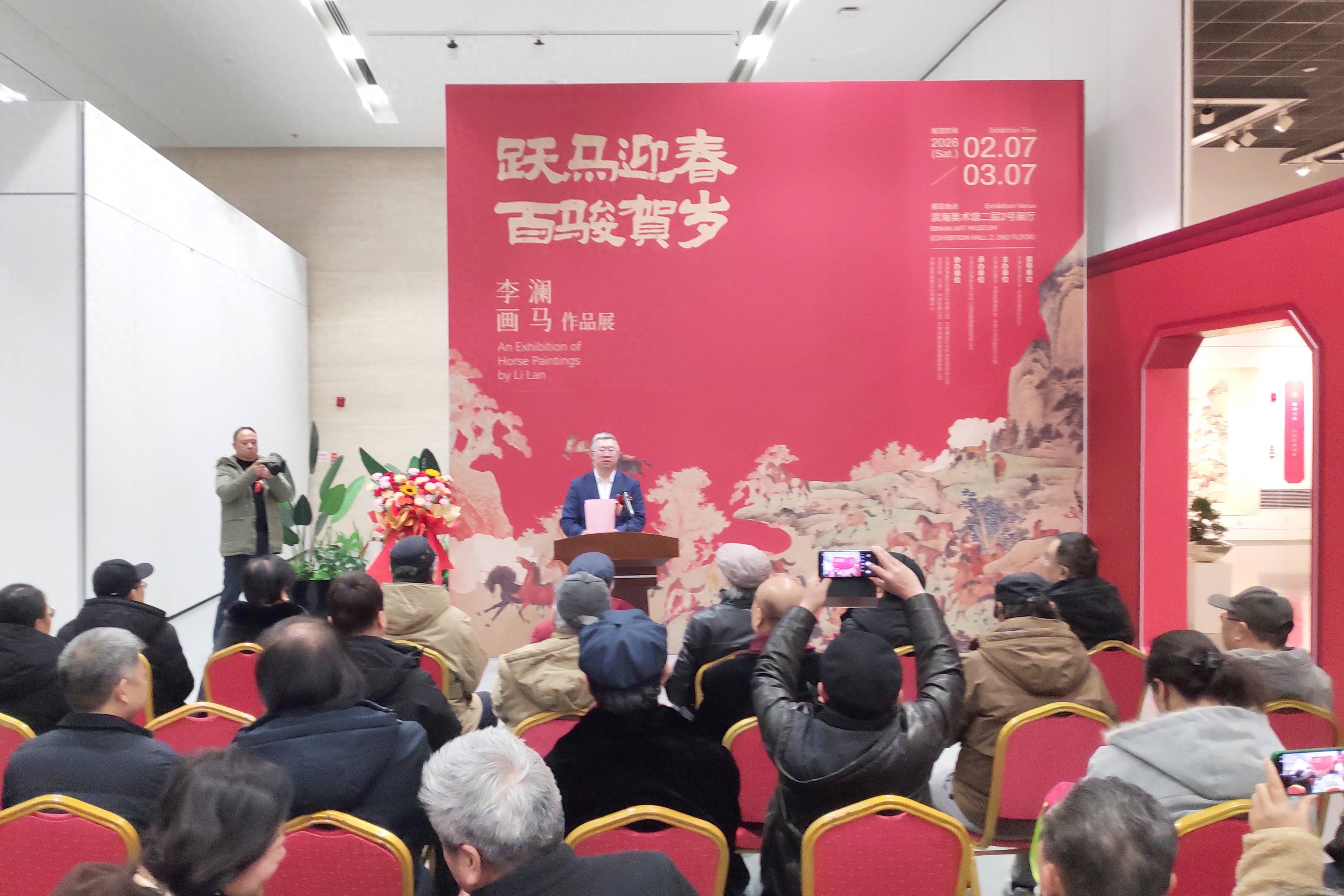 金骏启新程,翰墨润津门。2026年2月7日上午,在丙午马年新春佳节即将到来之际,“跃马迎春 百骏贺岁——李澜画马作品展”在天津滨海美术馆开幕。本次展览的指导单位是天津市美术家协会和天津非遗保护协会,主办单位是天津滨海美术馆和天津湖社画会。展期将至3月7日。