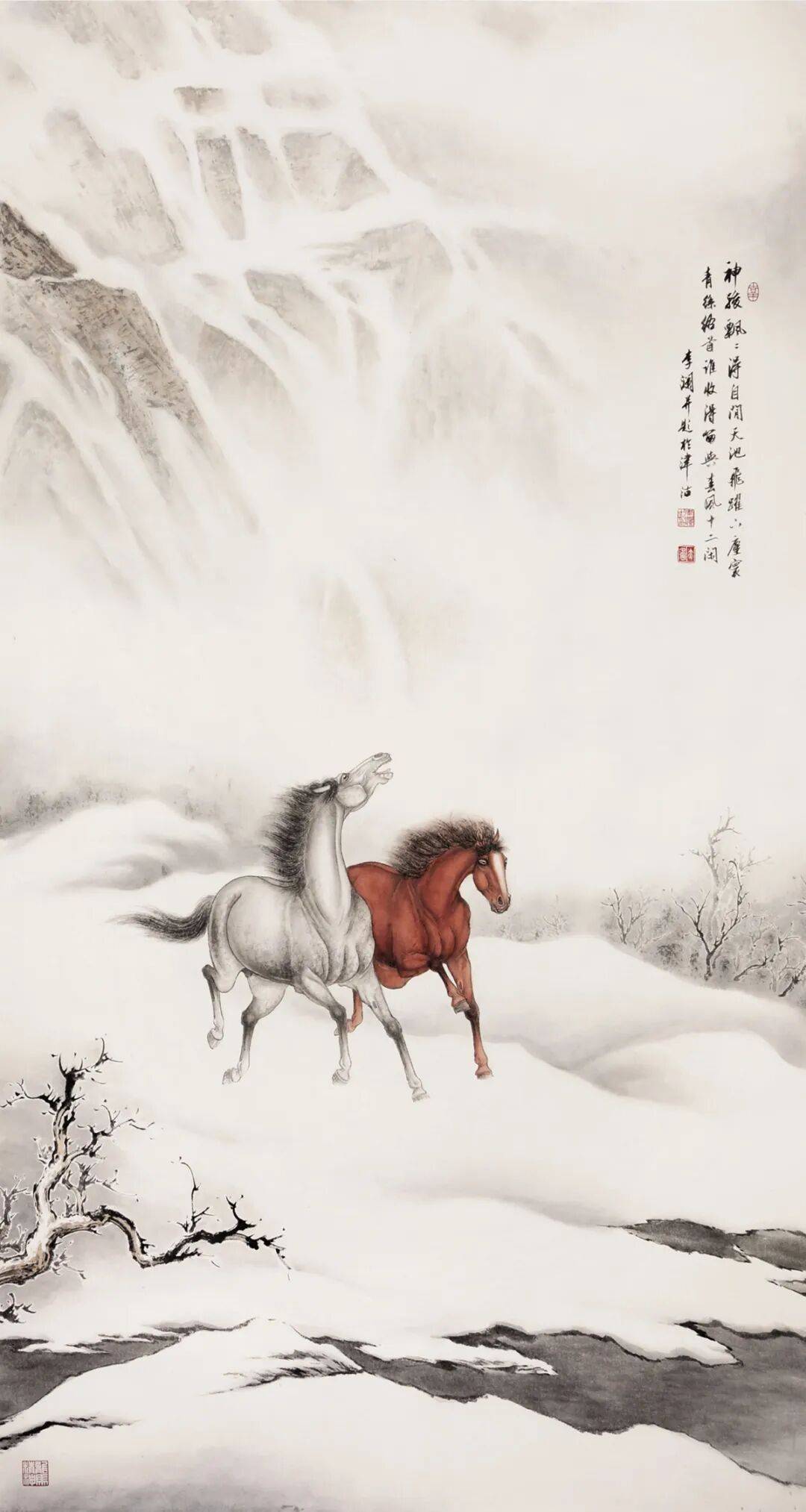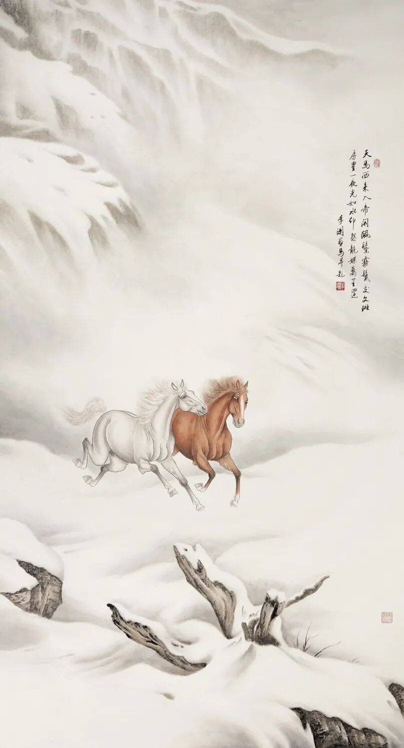 马是力量与自由的象征,是忠诚与奋进的化身,更是中华文脉中永不褪色的精神图腾。四十余载笔墨耕耘,李澜始终以马为友、以画为媒。她将对马的理解、对新春的祝福、对生活的感悟,尽数倾注于笔墨之间。李澜深耕画马艺术多年,笔墨传神、匠心独运,将骏马的俊朗与灵动、豪迈与奔放,融入每一幅作品之中,既传承了中国传统画马艺术的精髓,又融入了新时代的审美意趣,用笔墨为我们呈现出百骏争春的美好图景。