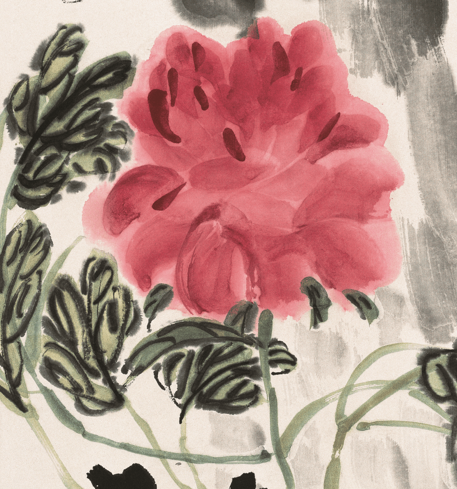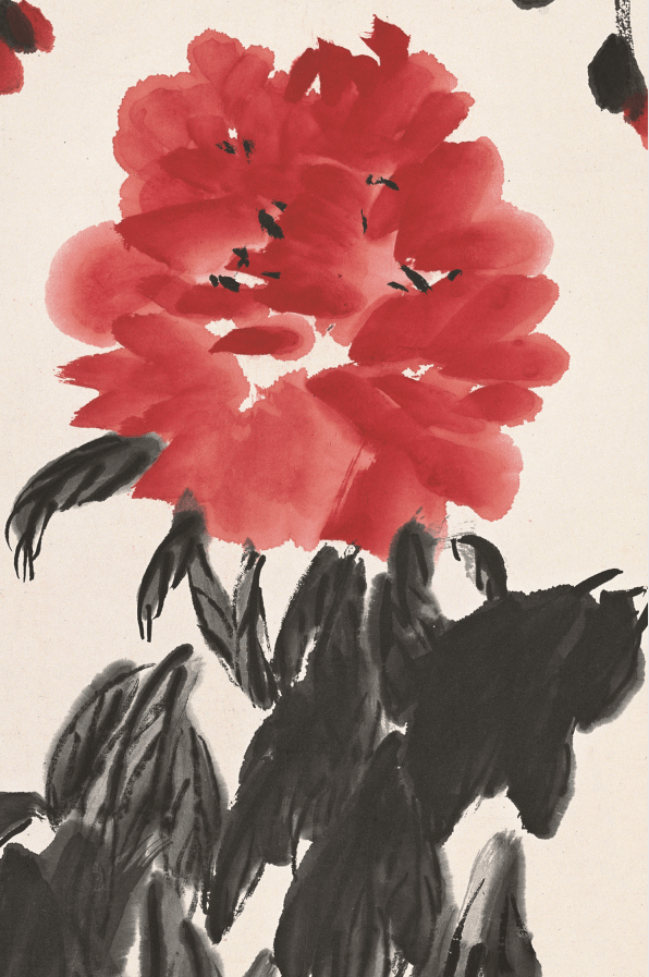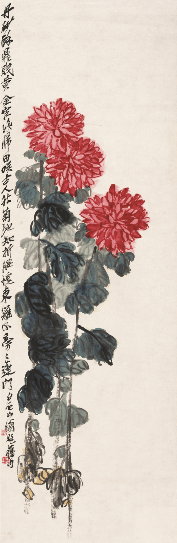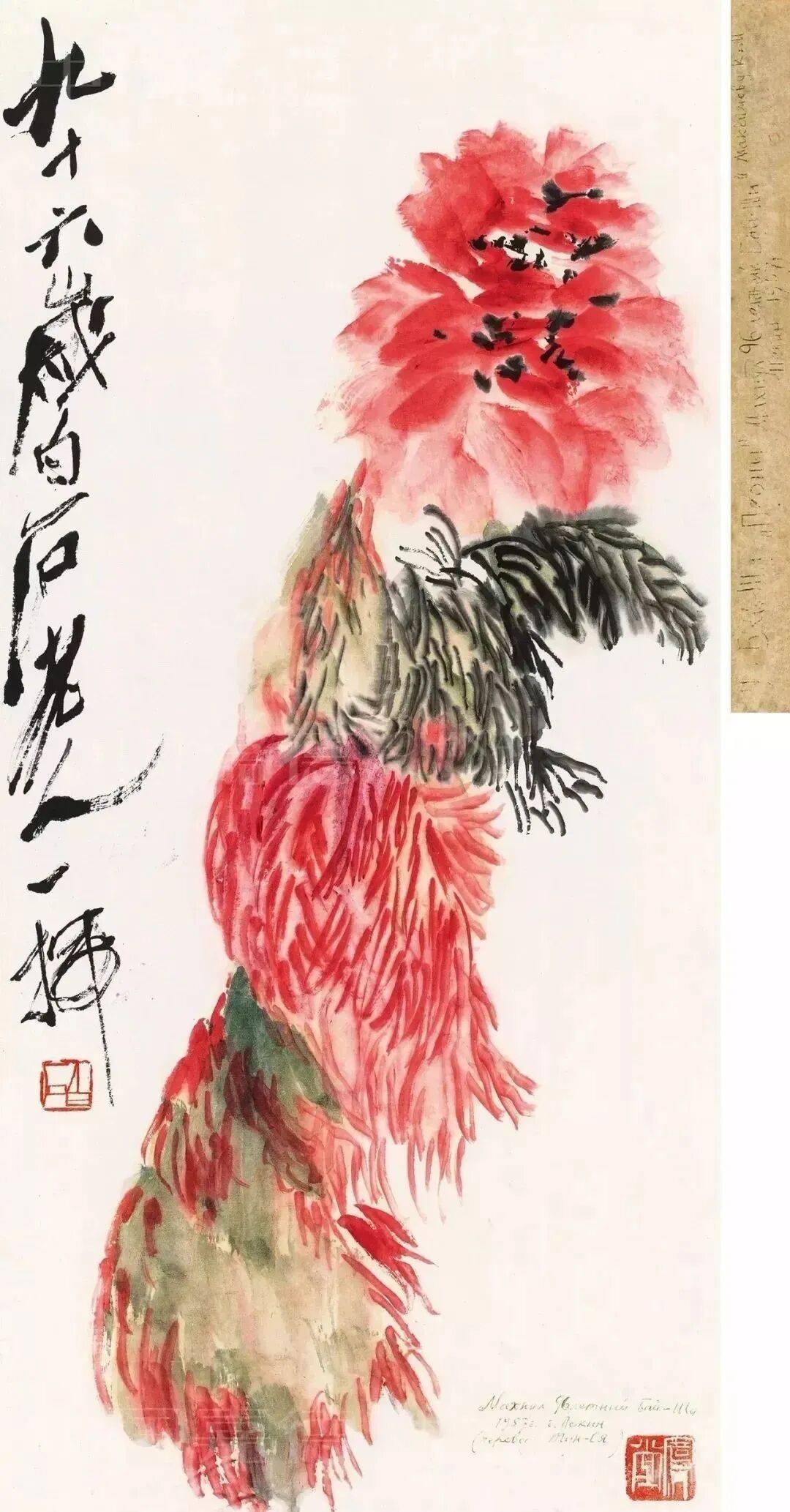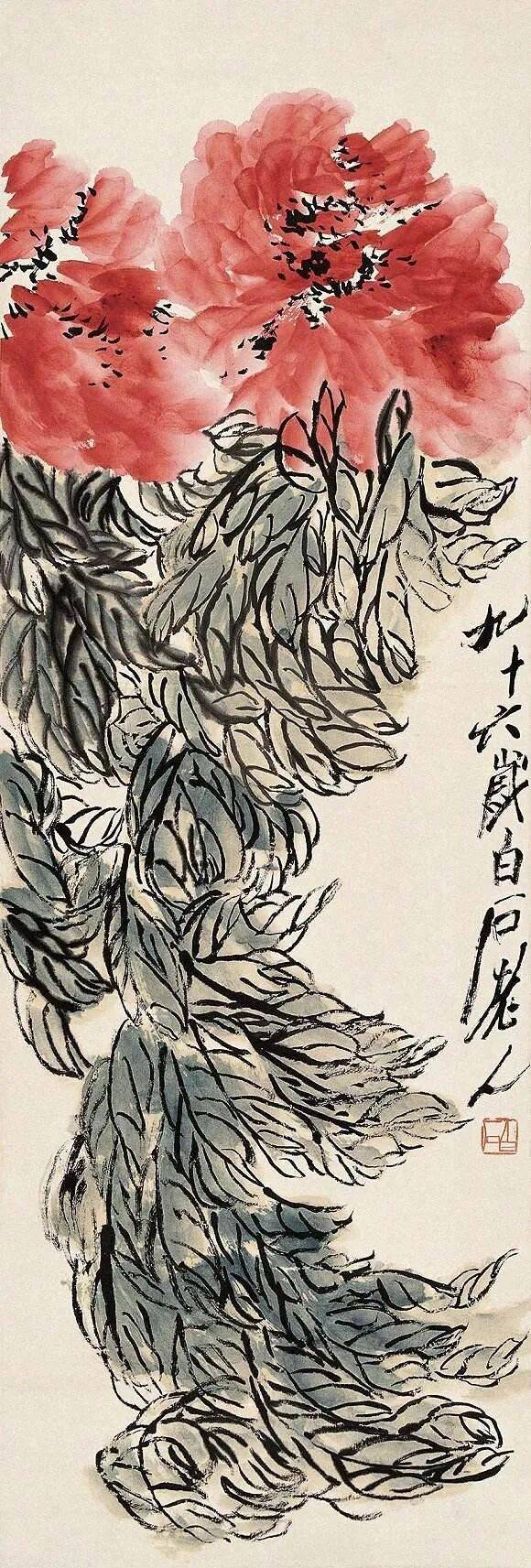 齐白石 《牡丹》103.5×34cm 纸本设色 1955年 北京画院藏