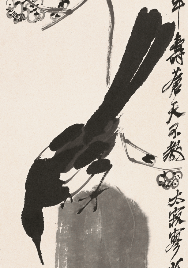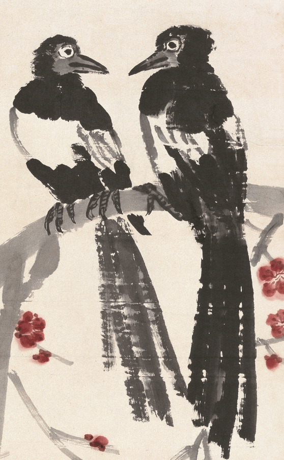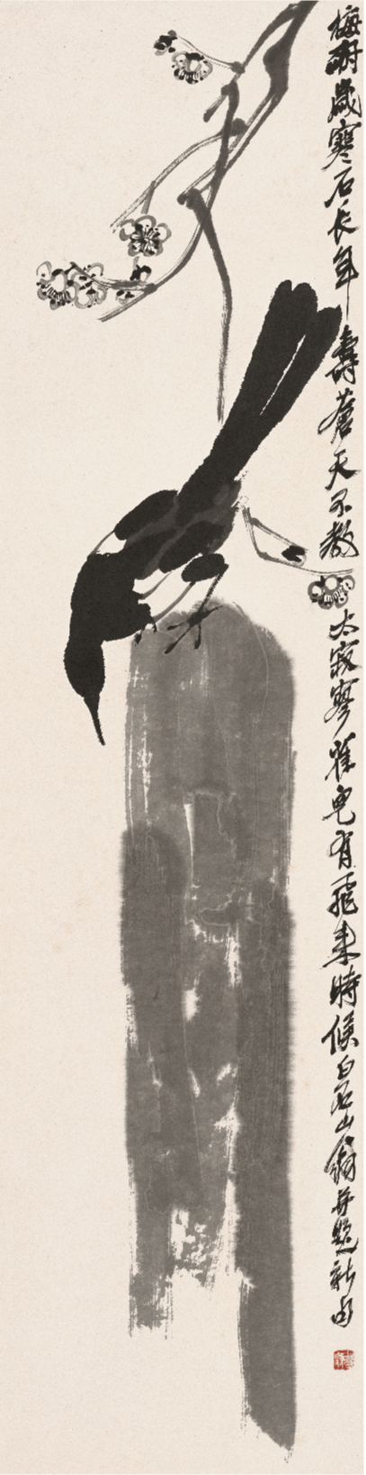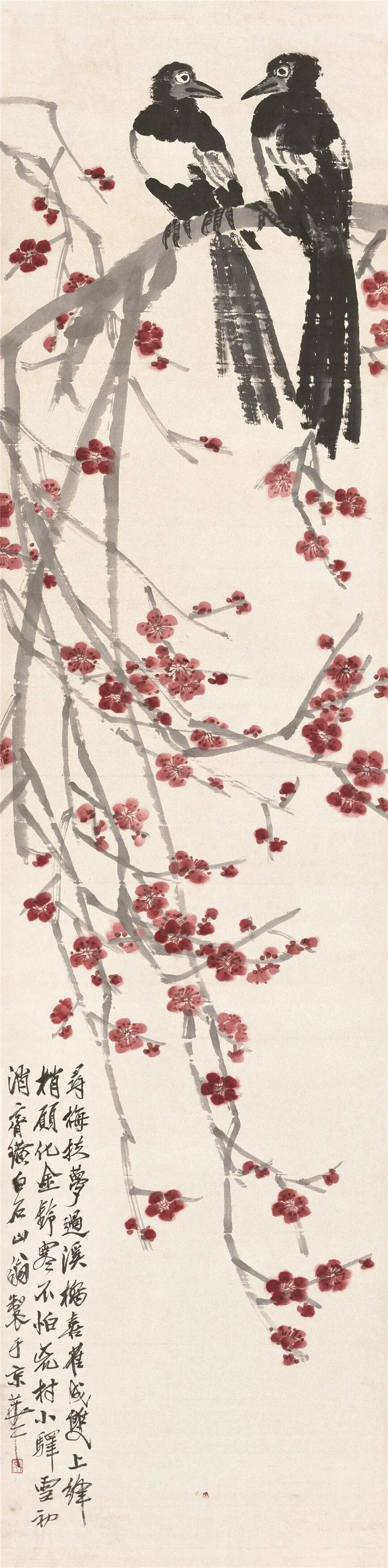 《梅鹊图》 齐白石 134×34.5cm 北京画院藏