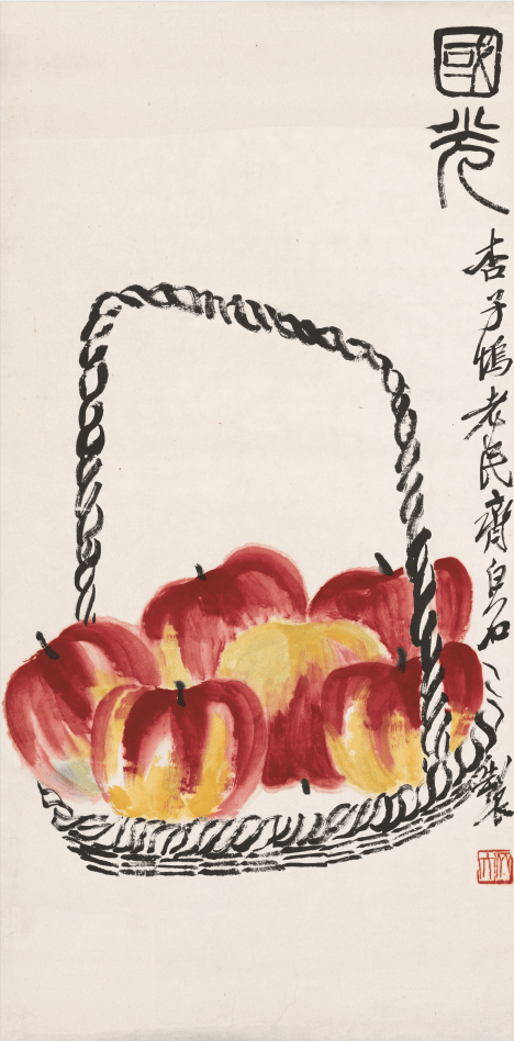 《寿桃》 齐白石 179×48.5cm 北京画院藏