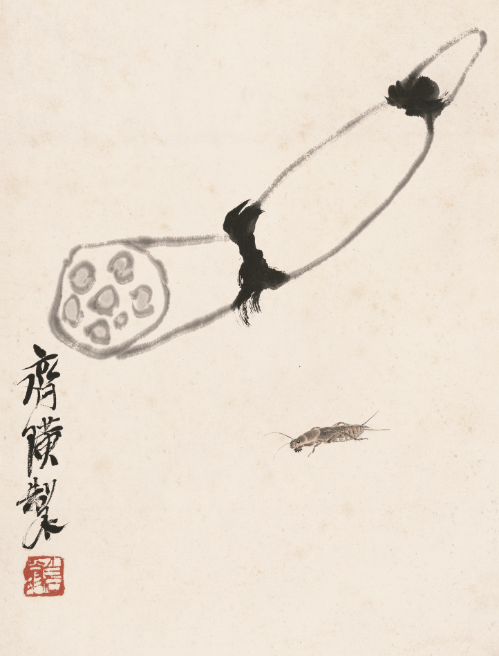 《藕和蝼蛄》(《工虫画册精34×27cm品》八开之四) 齐白石 1949年 北京画院藏