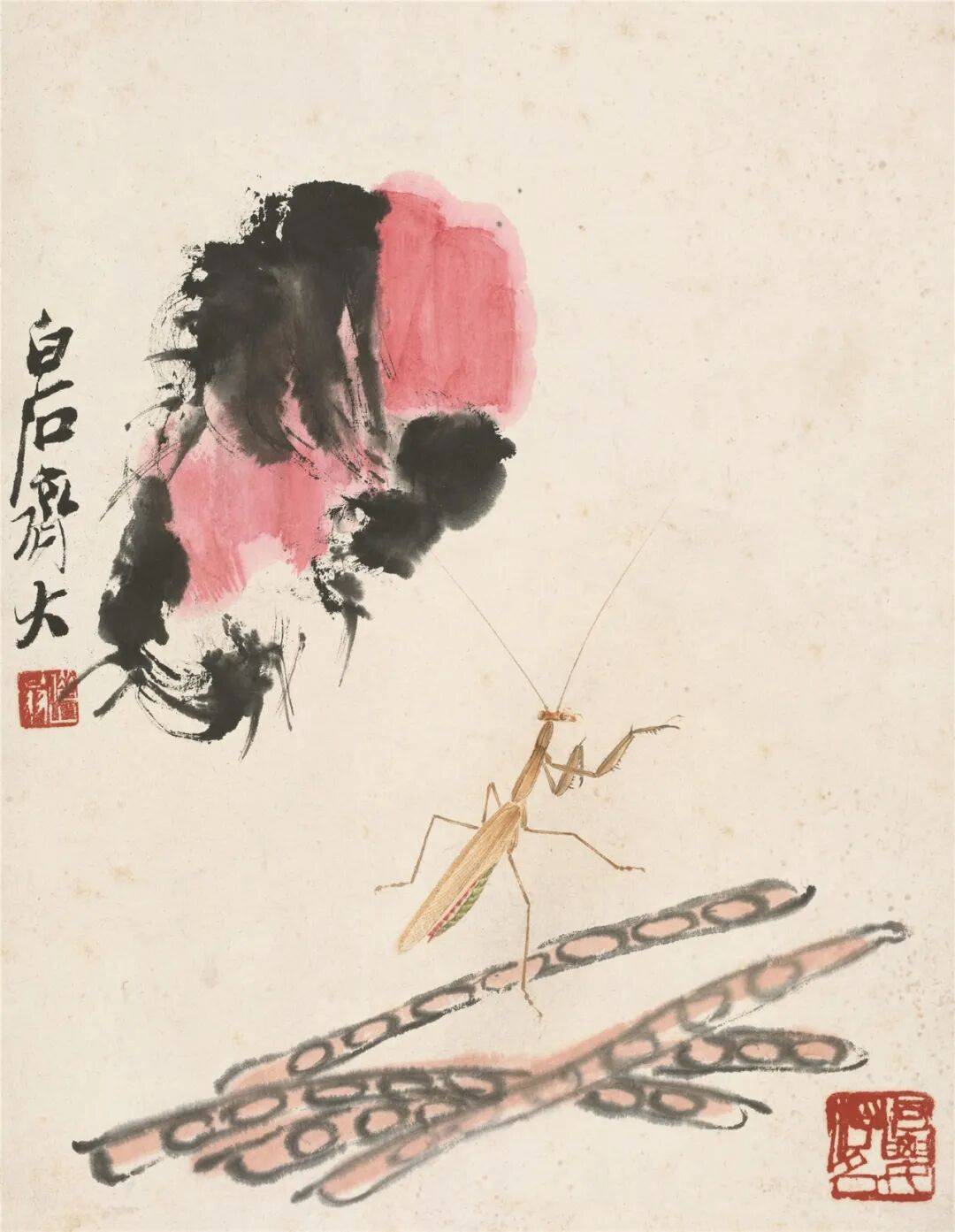 《豇豆螳螂》齐白石 34×27cm 1949年 北京画院藏