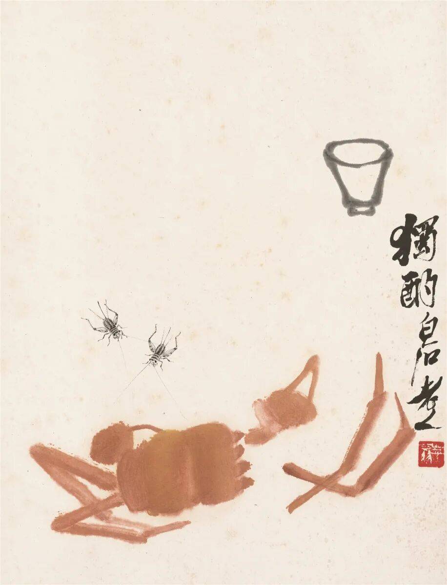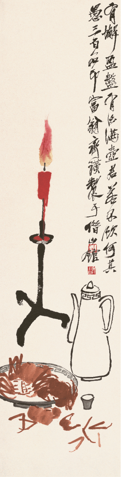 《蟹酒图》齐白石 133.5×33.5cm 北京画院