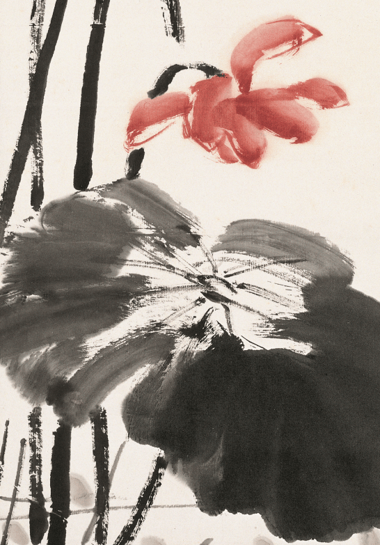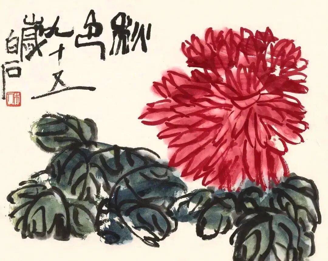 后来我跟他熟了以后,他同我非常要好,等于他的学生,常常给他牵纸画画,我看他画了十年;可是齐白石的花鸟,我一辈子不画,我主要地看他的构图、笔法。我看他画画,非常慢,非常严肃。看他行笔那么慢,我还和他开玩笑,说: “你常常题画,‘白石老人一挥’,我看你从来没有挥过。”